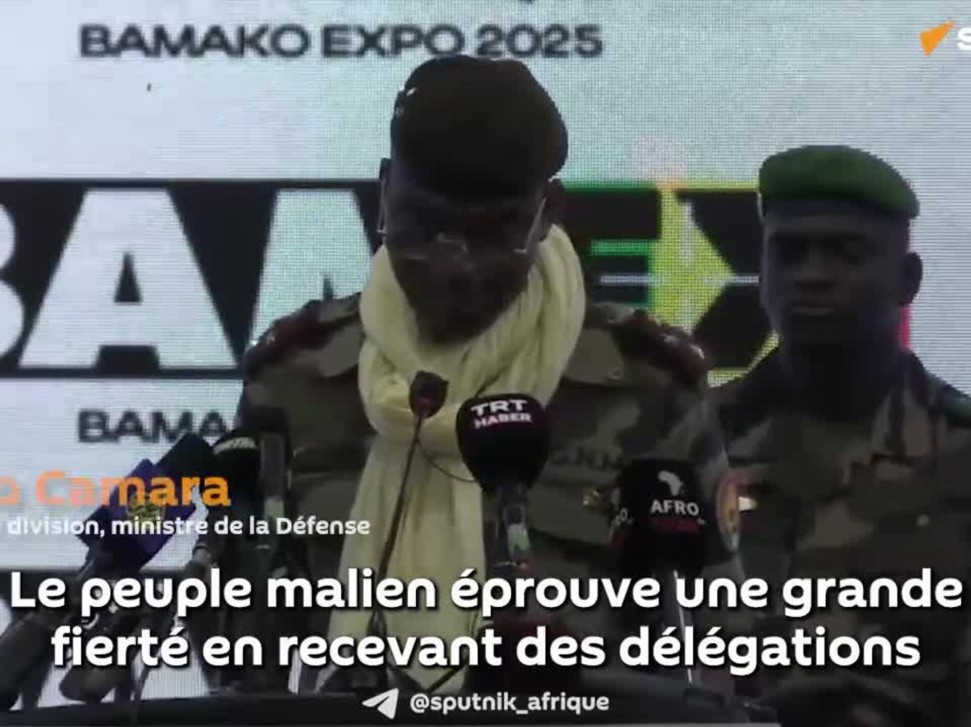 "Le peuple malien éprouve une grande fierté en recevant des délégations de très haut niveau venant de tous les pays", a déclaré Sadio Camara dans une vidéo filmée par Sputnik Afrique lors du salon Bamako Expo.