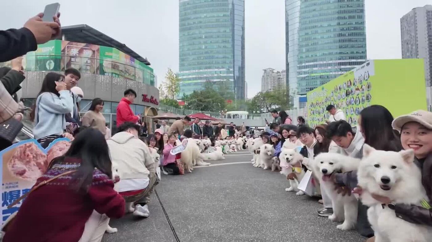 Chongqing, mégapole chinoise. Cette semaine, la vraie star n'est pas un dragon de feu, mais une armée de samoyèdes.