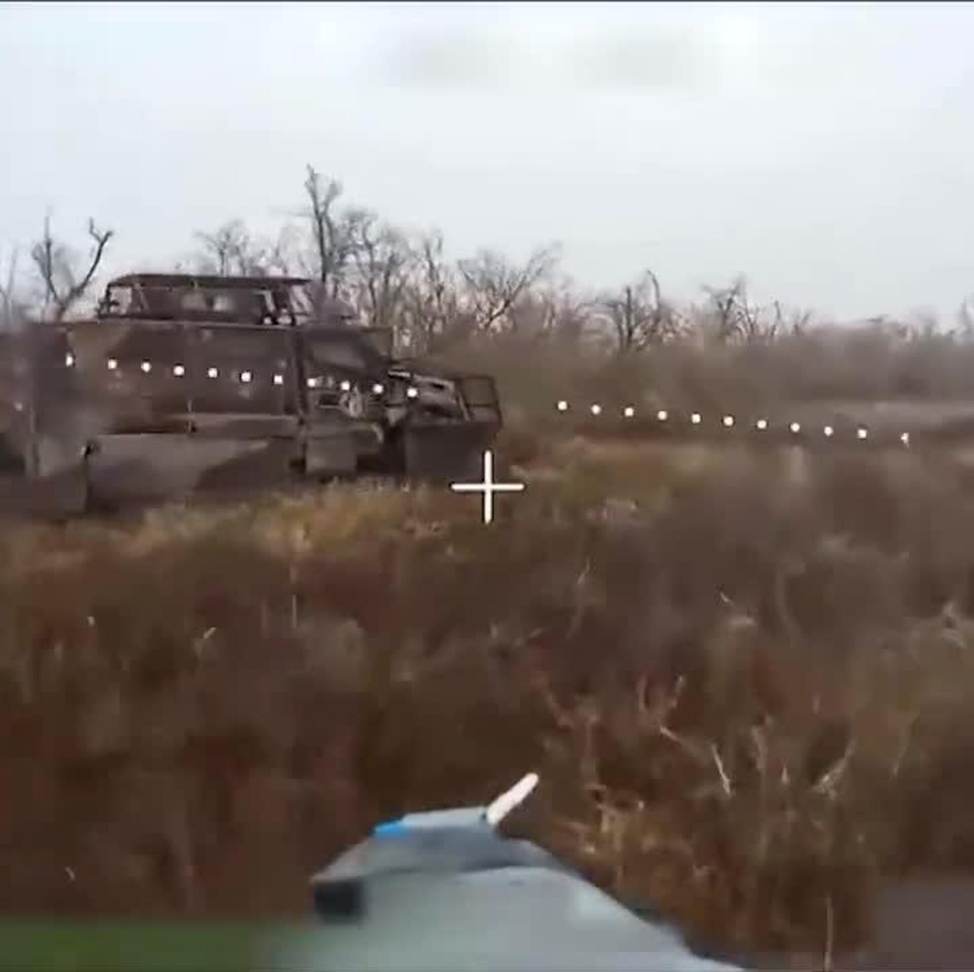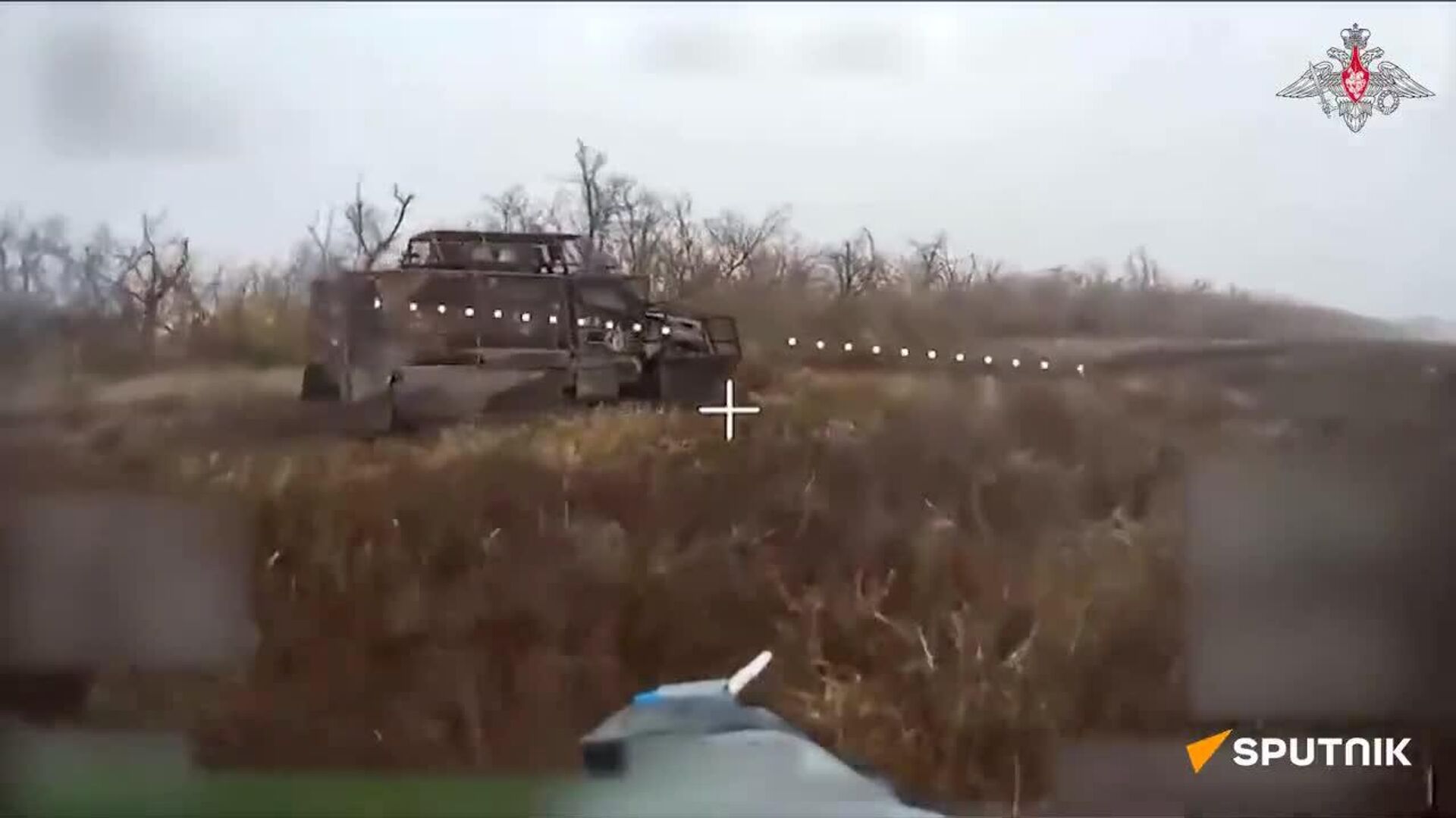 00:00 Des militaires du groupement Centre ont incendié un VTT MaxxPro de fabrication US sur l'axe de Krasnoarmeïsk.