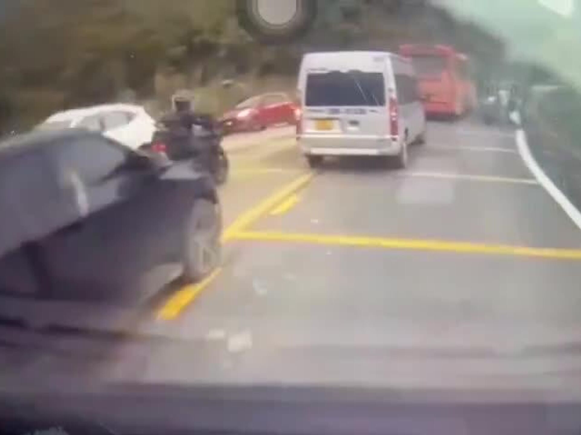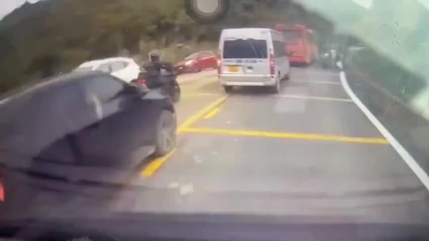 Trois personnes ont été ensevelies: deux ouvriers routiers qui peignaient les marquages au sol et un motard qui passait par là au mauvais moment, selon les autorités locales et les médias. #viral
