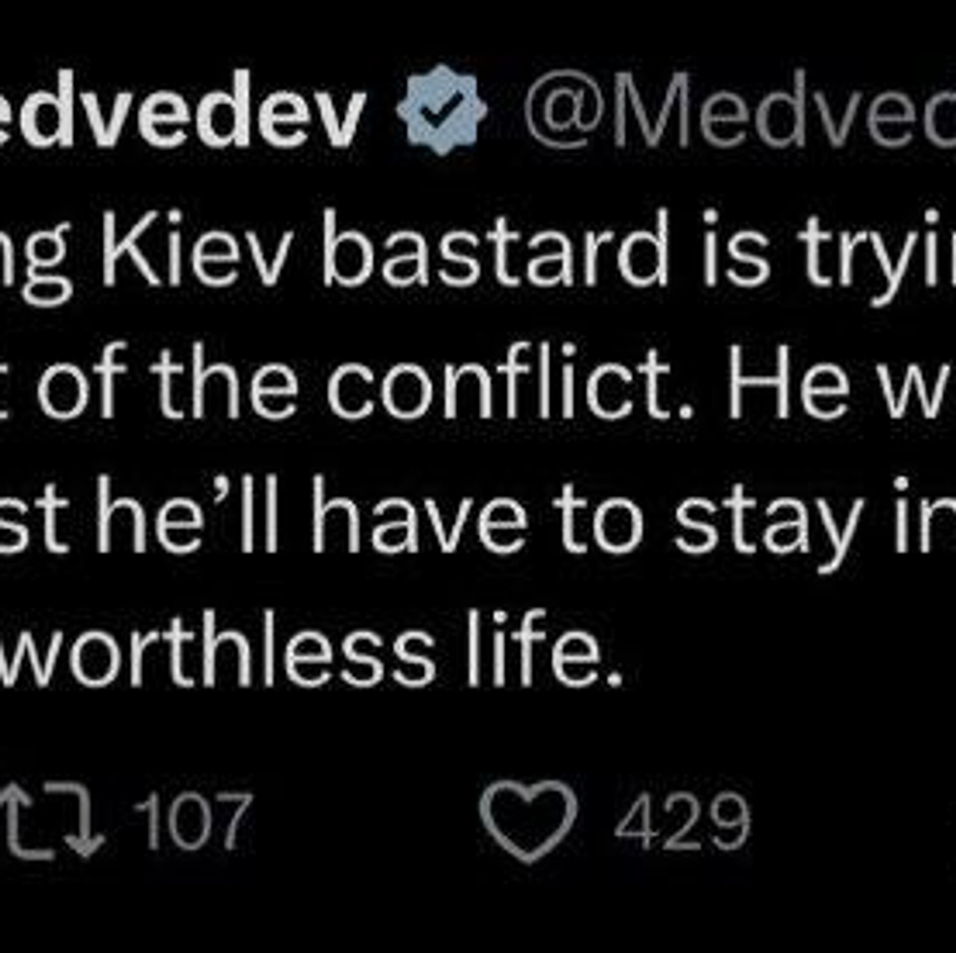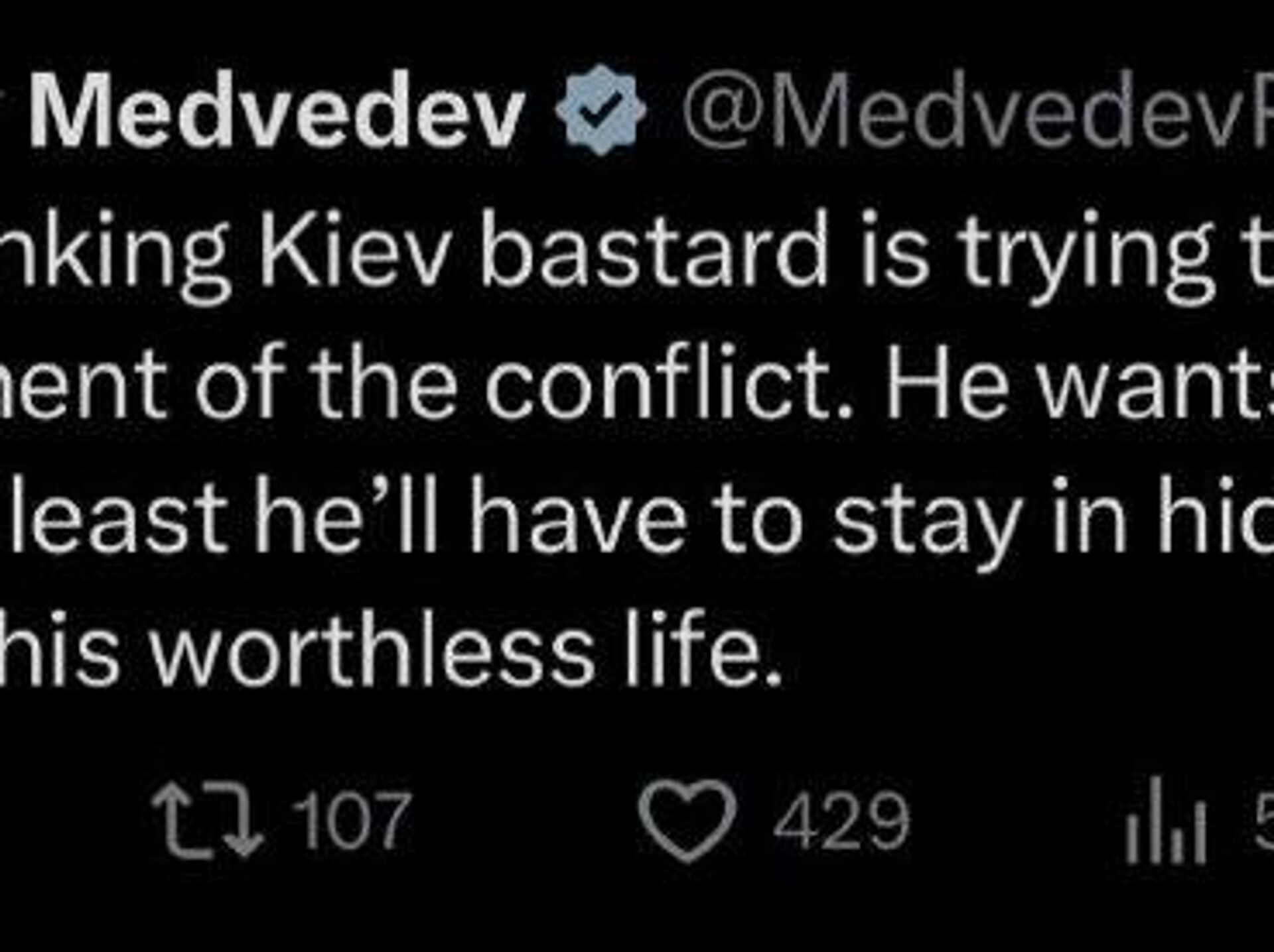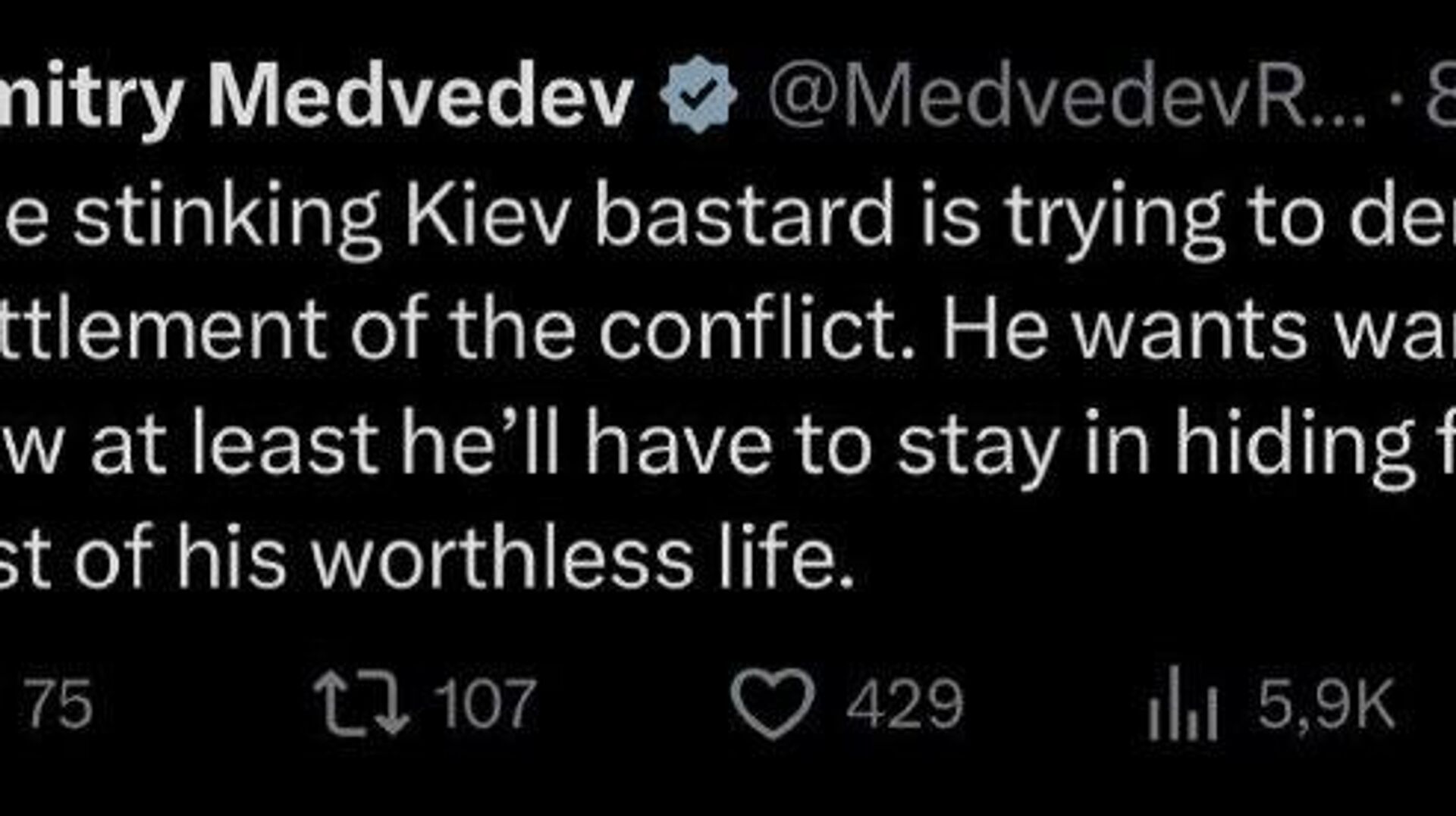 "Il devra se cacher jusqu’à la fin de sa vie misérable", a ajouté le vice-président du Conseil de sécurité russe.