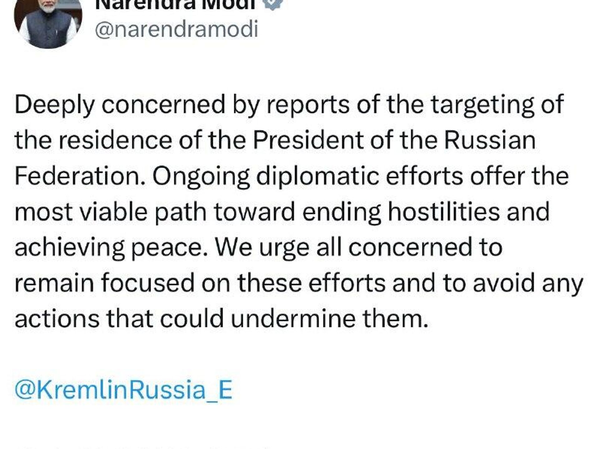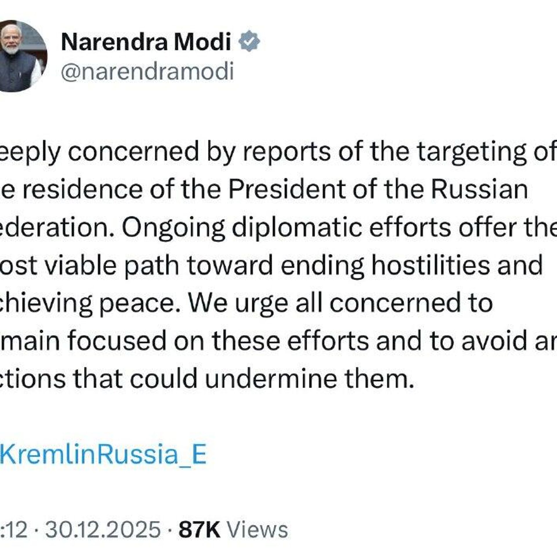 "Nous estimons que les efforts diplomatiques représentent la voie la plus réaliste pour mettre fin aux hostilités et instaurer la paix. Nous exhortons toutes les parties concernées à maintenir ces efforts et à s'abstenir de toute action susceptible de les compromettre", a quant à lui indiqué le Premier ministre indien sur X.