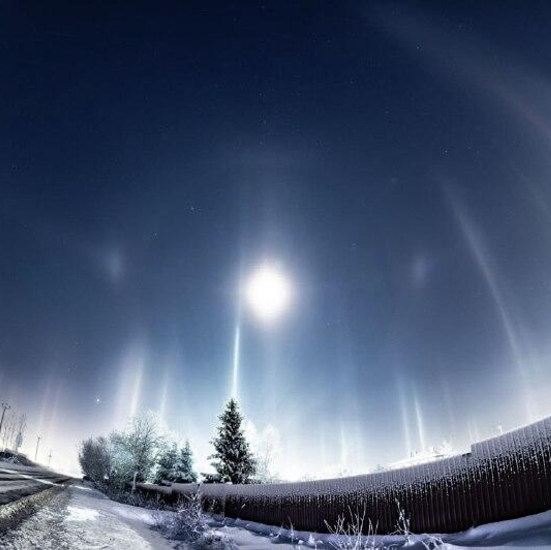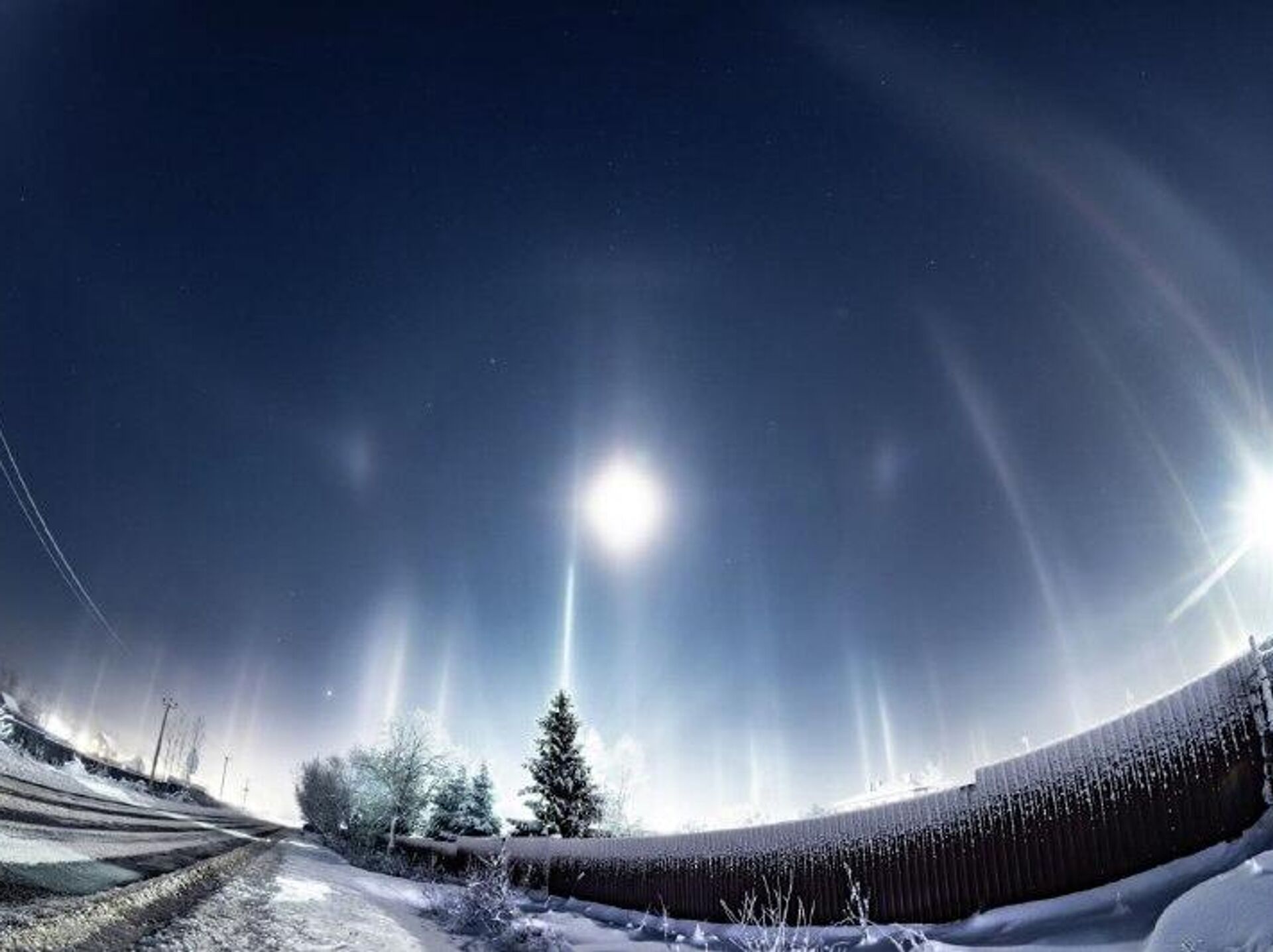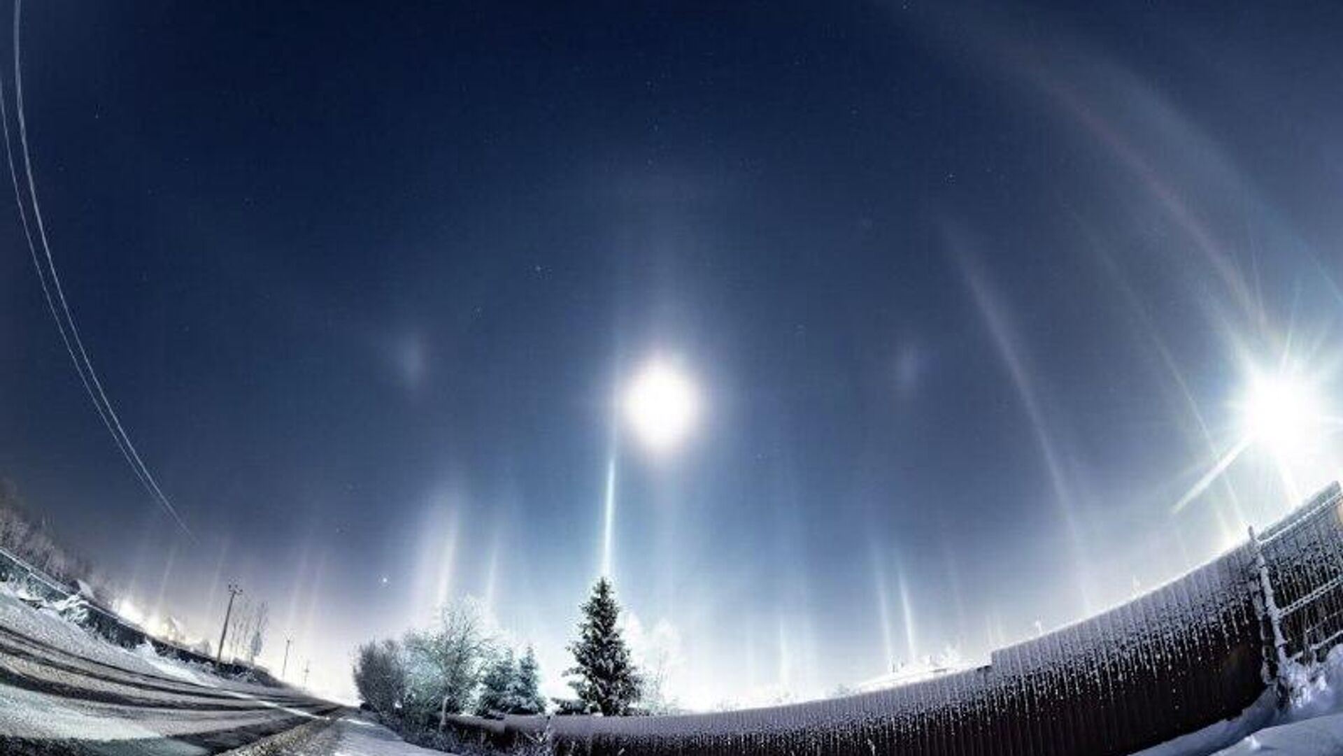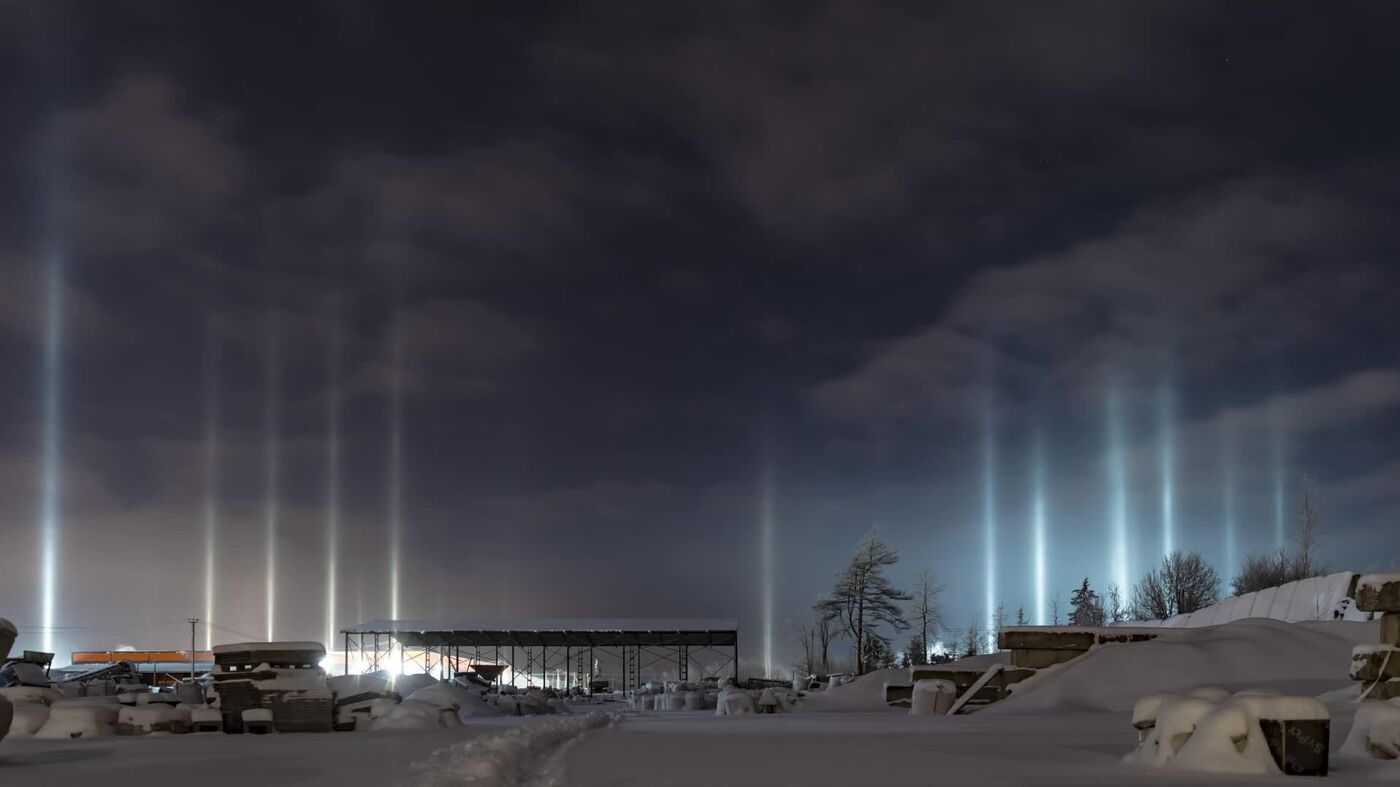 Des habitants ont immortalisé un phénomène naturel inhabituel la nuit dernière. Ces piliers de lumière multicolores sont formés par la réflexion des lampadaires sur des cristaux de glace présents dans l'air.