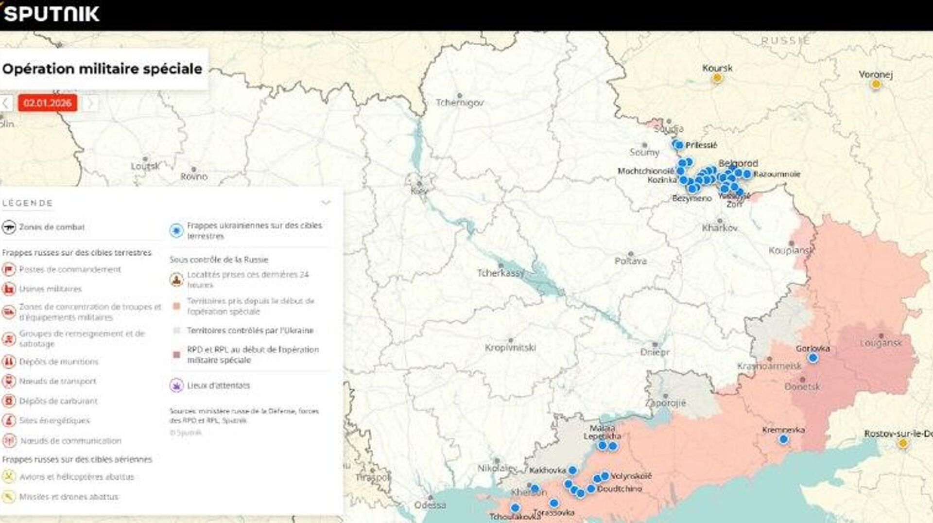 Situation dans la zone de l'opération militaire spéciale russe au 2 janvier Pour en savoir plus sur l’emplacement et l’avancée des troupes, consultez... 02.01.2026, Sputnik Afrique