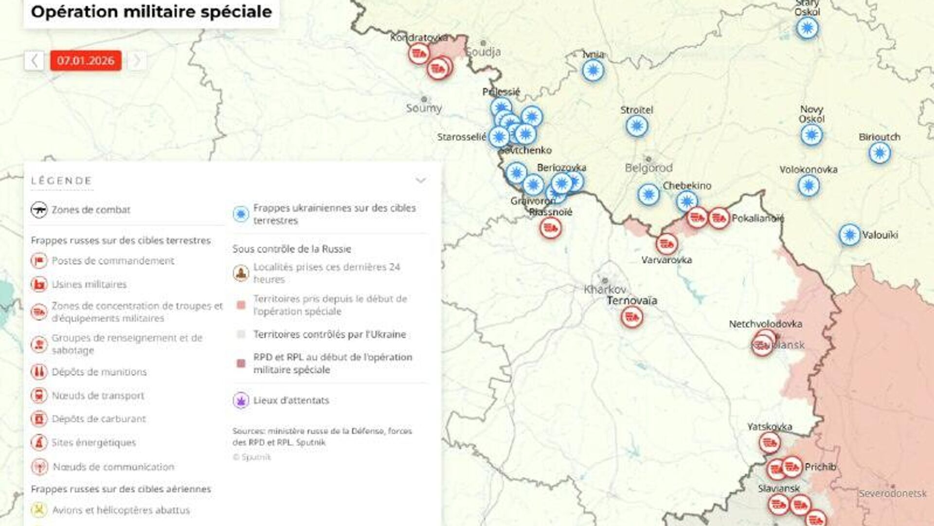 Situation dans la zone de l'opération militaire spéciale russe au 7 janvier Pour en savoir plus sur l’emplacement et l’avancée des troupes, consultez... 07.01.2026, Sputnik Afrique