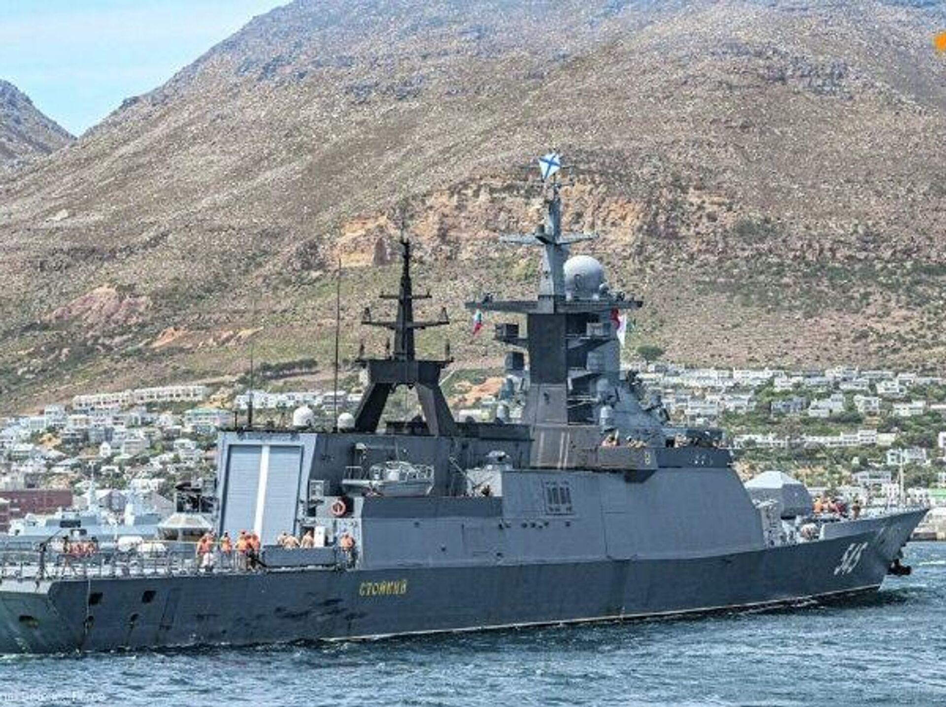 Relayant les images de cette rencontre, elles ont également publié des photographies du navire russe Stoikiy, amarré à la base militaire de Simon's Town.