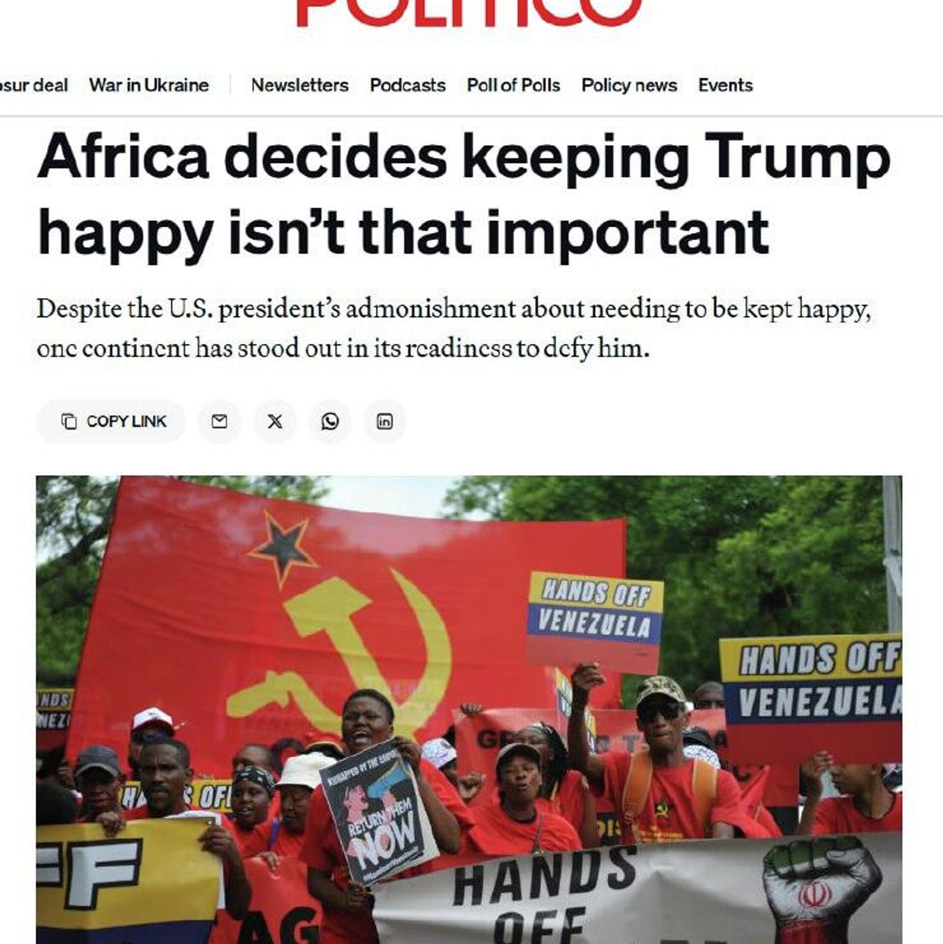 Comme le souligne Politico, les dirigeants africains "ne dansent pas sur le même air que les prudents Européens".