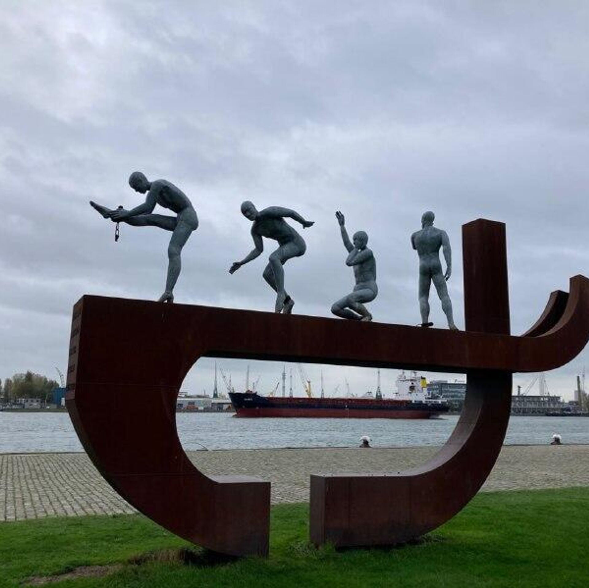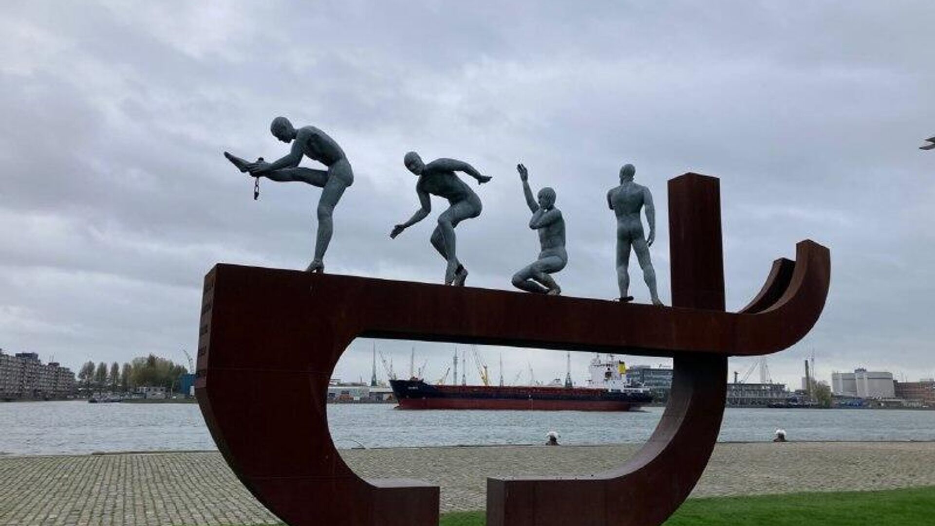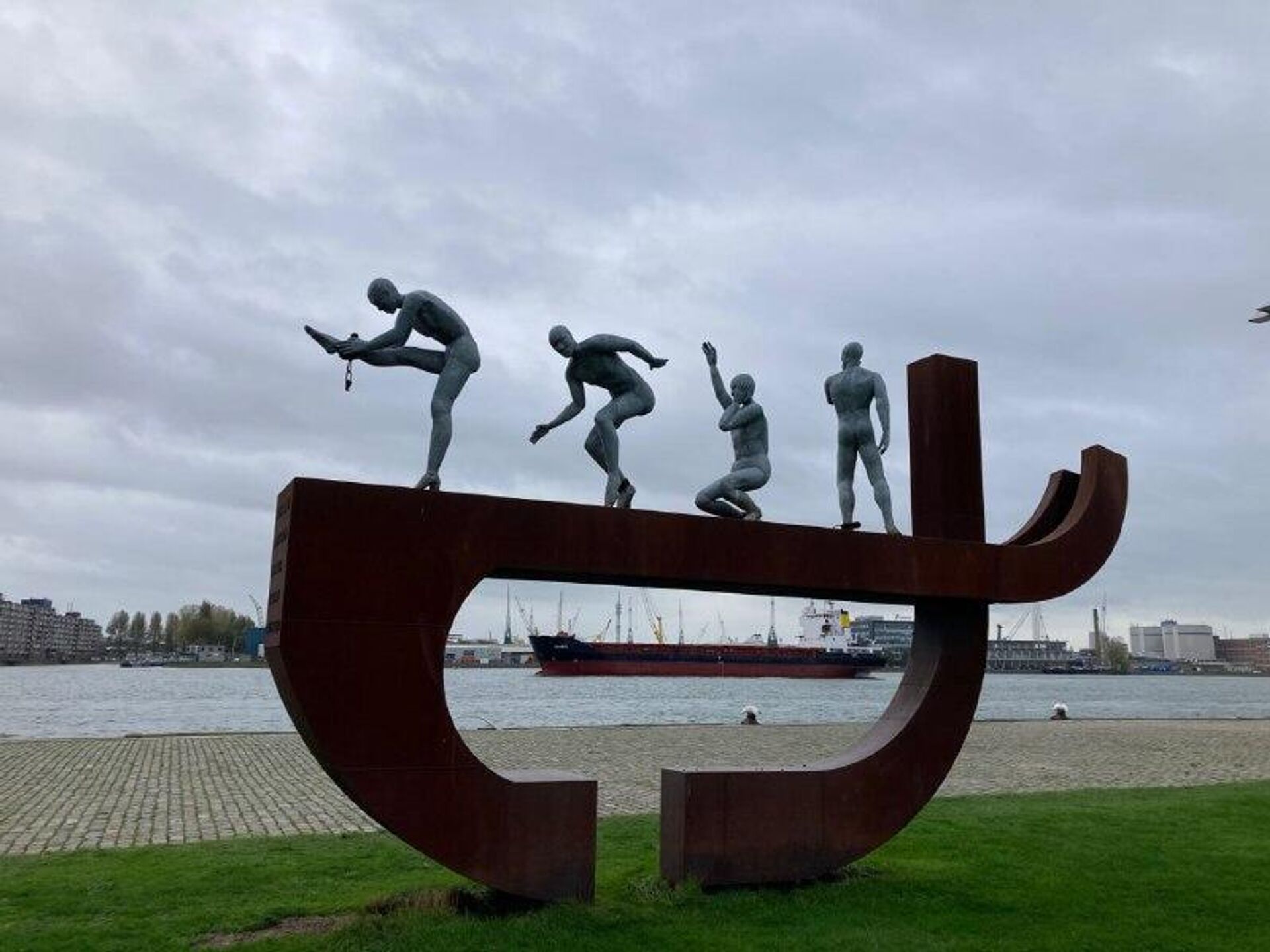 Sur la photo: Monument à l’esclavage à Rotterdam. L’œuvre d’Alex da Silva représente 4 personnes se libérant de leurs chaînes sur le pont d'un navire.