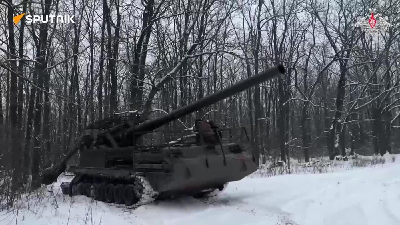 20:31 24.01.2026 (Mis à jour: 20:42 24.01.2026) Des obusiers automoteurs russes Malka détruisent des abris et du matériel de l'armée ukrainienne