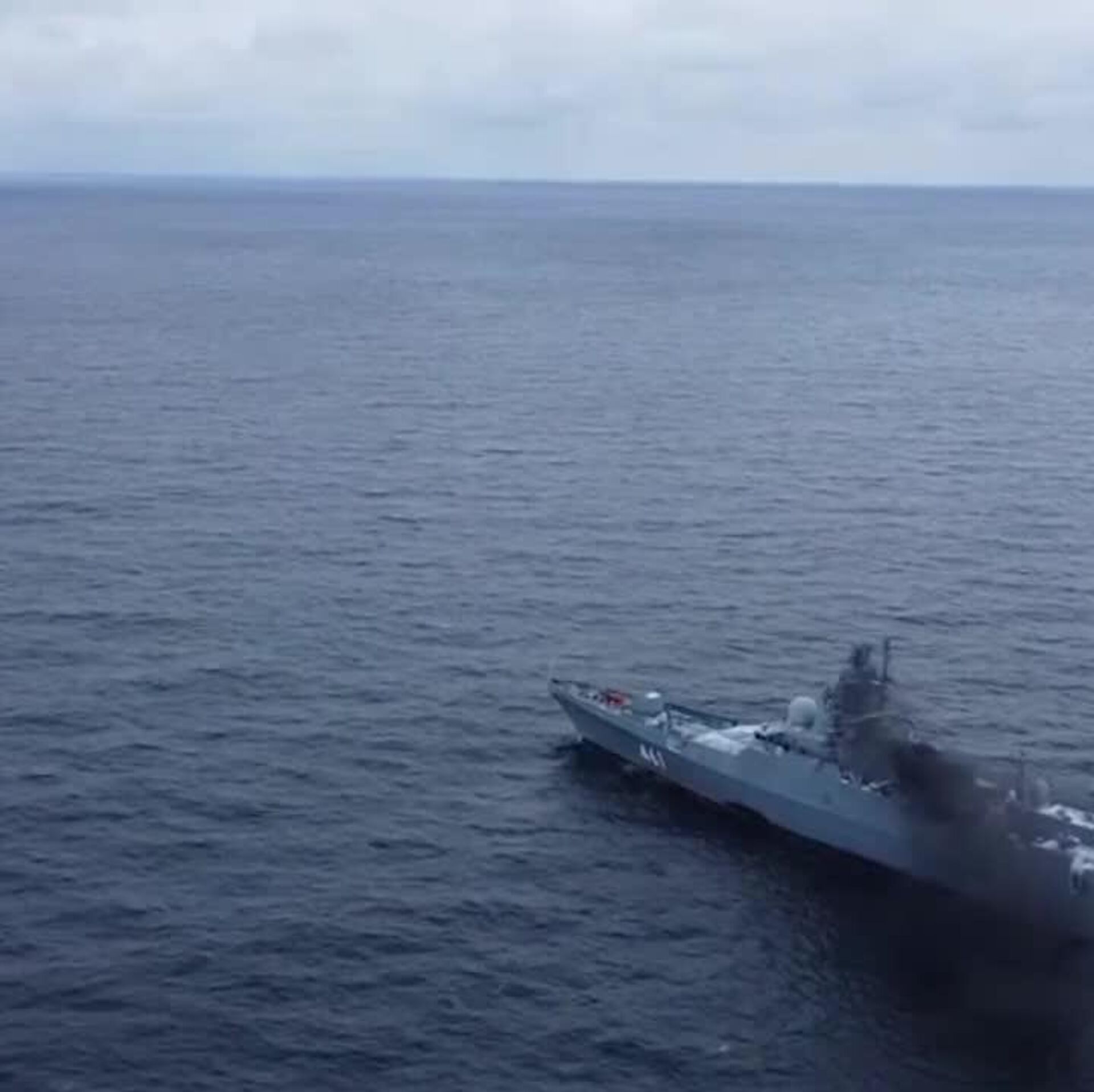 L'équipage a visé des cibles côtières à une distance de 12 kilomètres, détruit des drones navals et repoussé des attaques aériennes, indique la Défense russe.