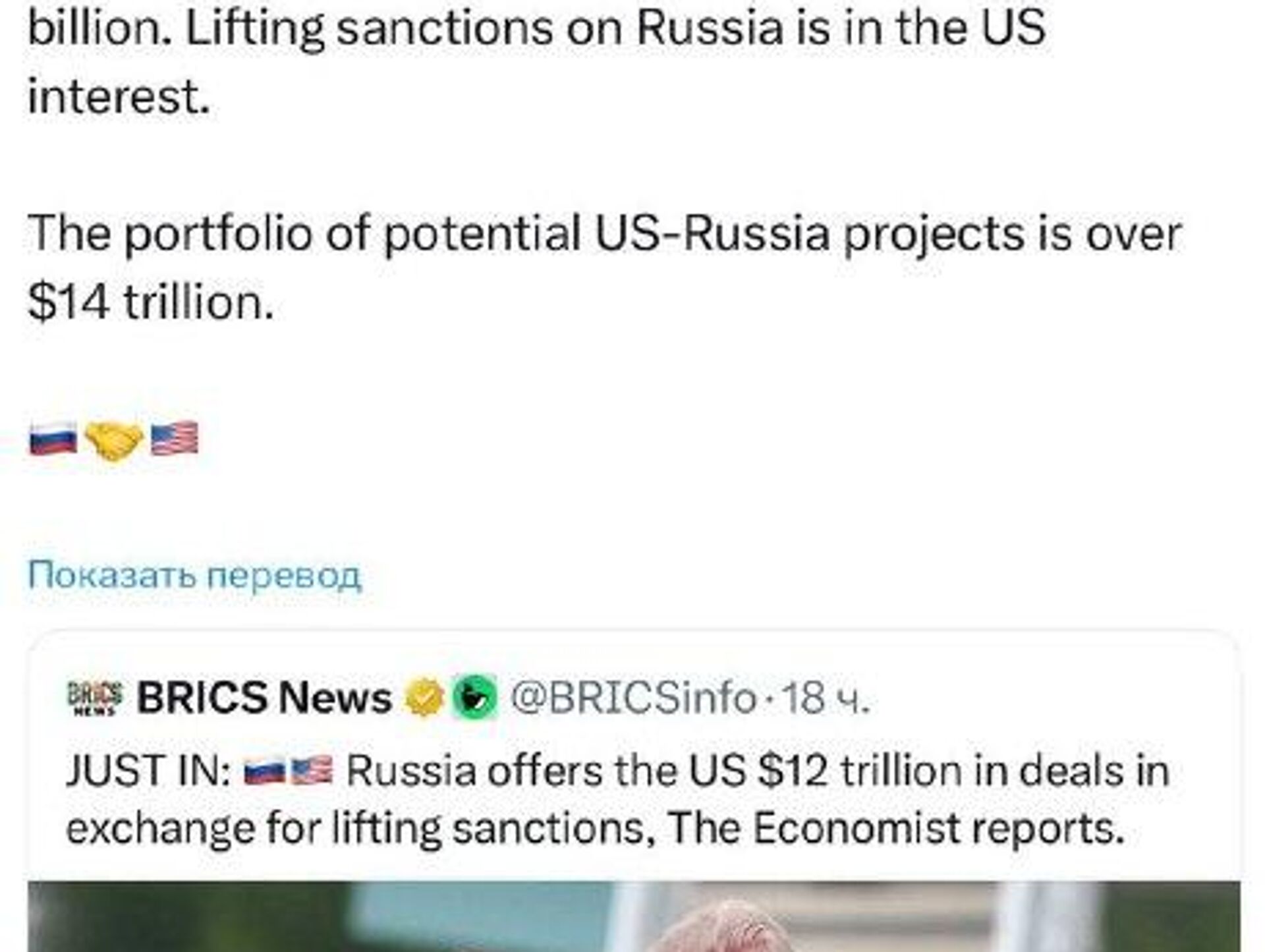16:30 19.02.2026 (Mis à jour: 16:42 19.02.2026) "Fake news" : un envoyé de Poutine dément un article selon lequel la Russie propose aux États-Unis des contrats d'une valeur de $12.000 milliards en échange de la levée des sanctions
