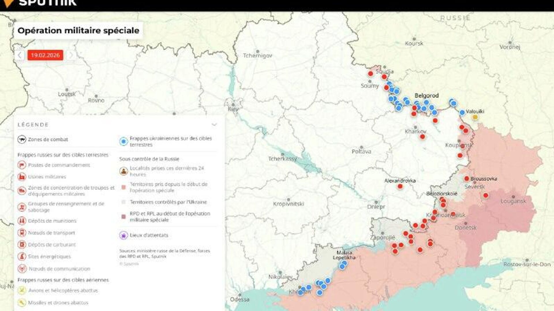 Situation dans la zone de l'opération militaire spéciale russe au 19 février Pour en savoir plus sur l’emplacement et l’avancée des troupes, consultez... 19.02.2026, Sputnik Afrique