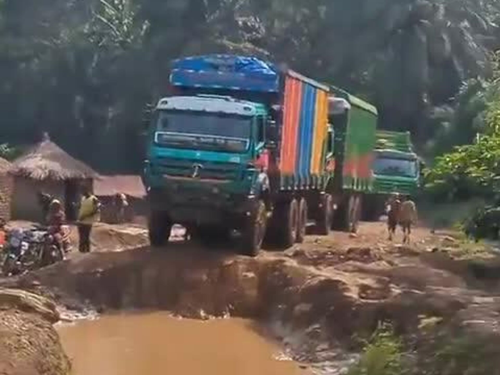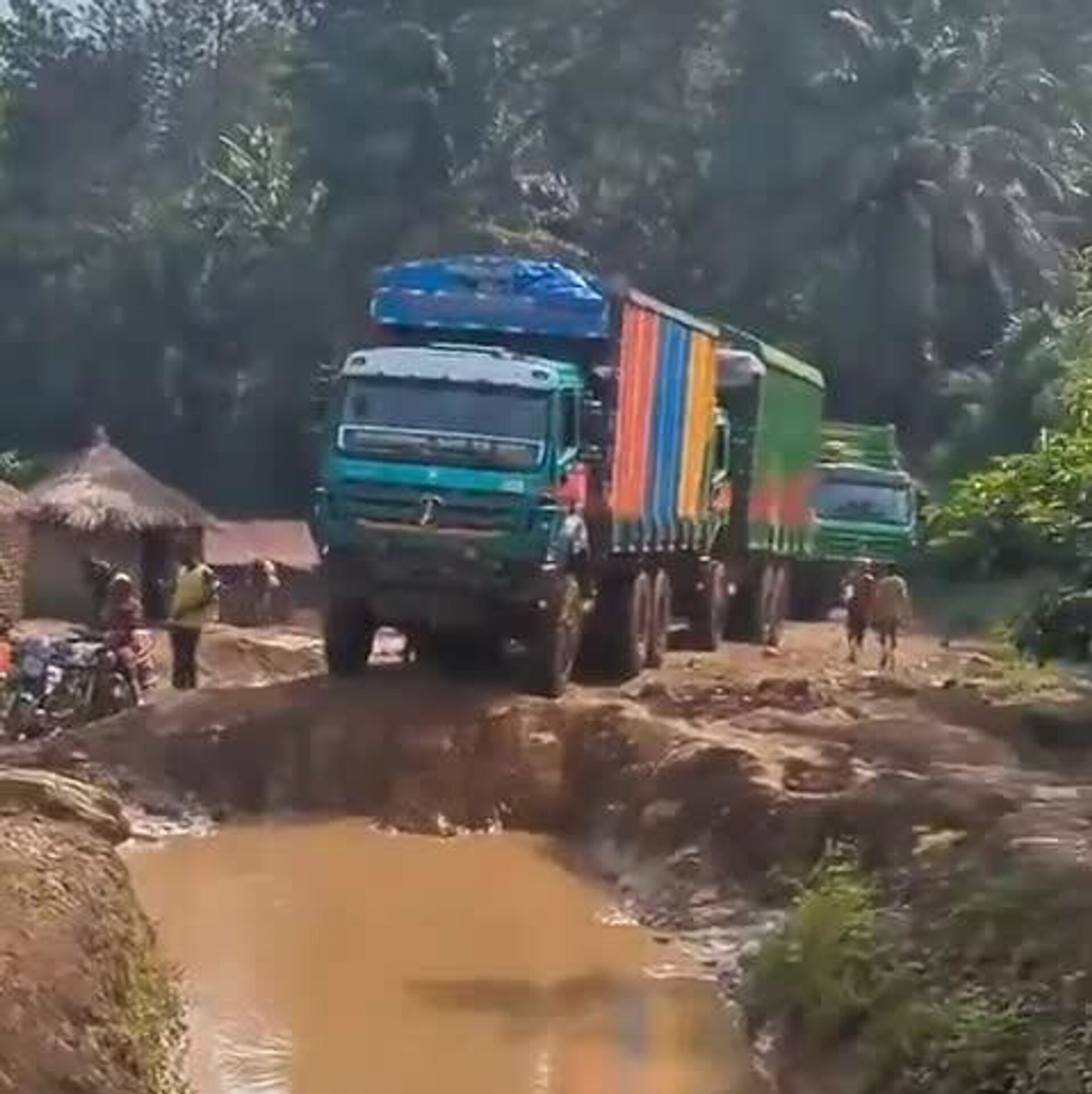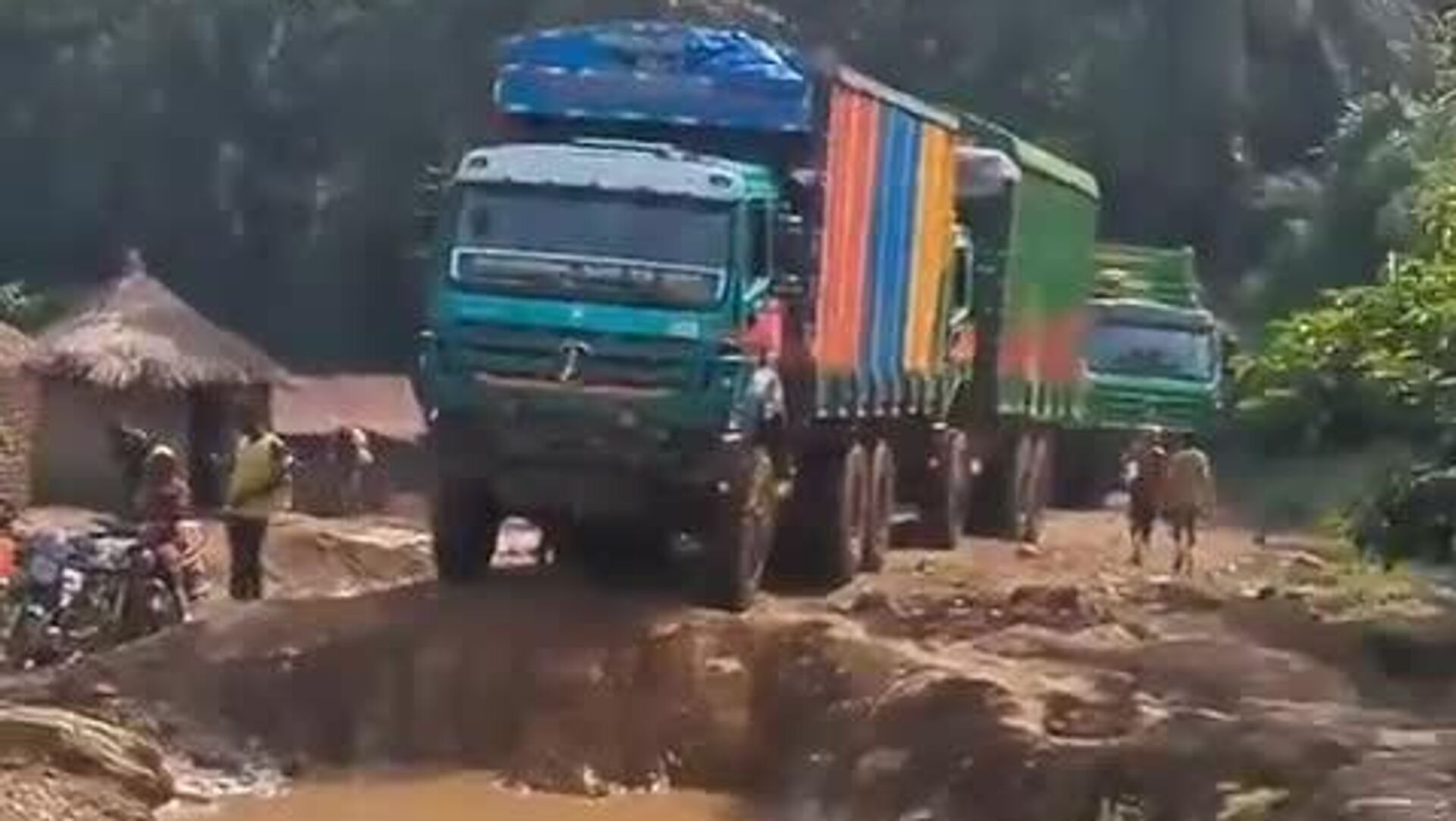 Une vidéo filmée quelque part en RDC illustre le quotidien des transporteurs locaux. En effet, le réseau routier du pays compte 152.400 km, mais la part de bitume est infime: seulement 2% du réseau est revêtu.