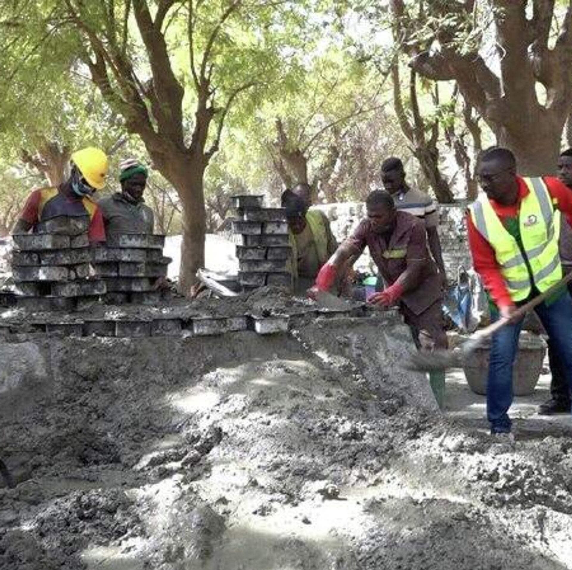 Ce montant a été converti en matériaux destinés à la production de pavés, notamment 80 tonnes de granit et 10 tonnes de ciment.