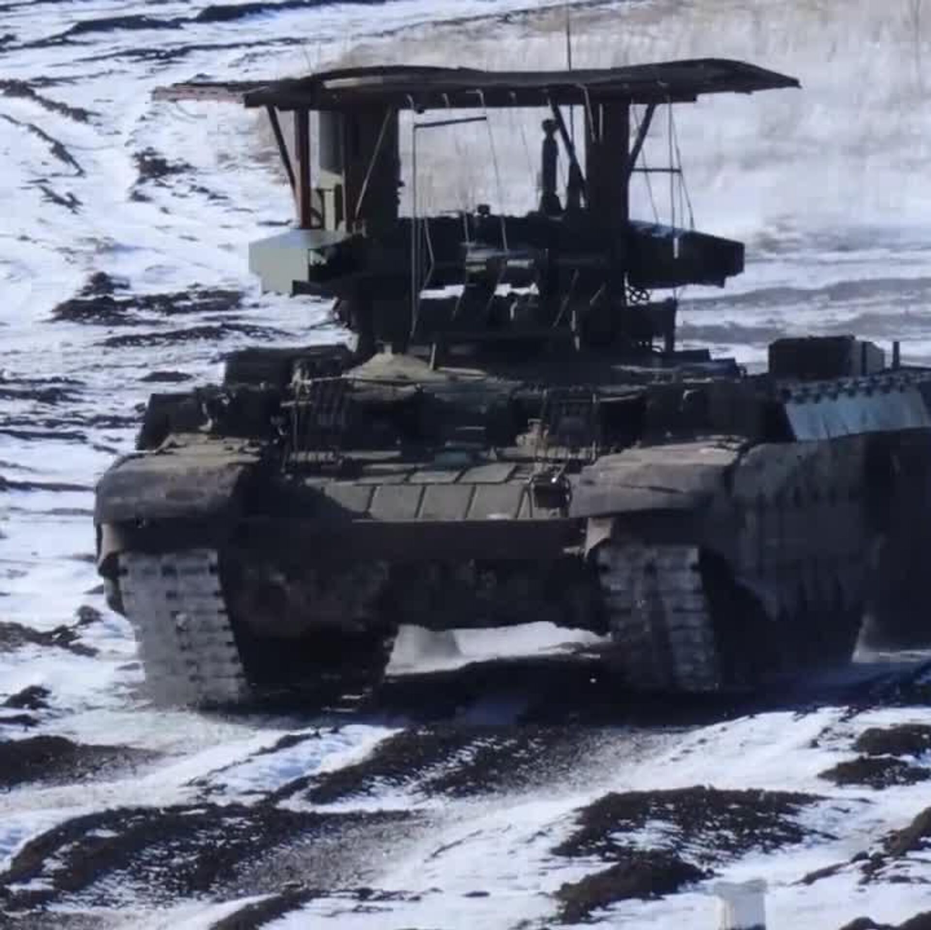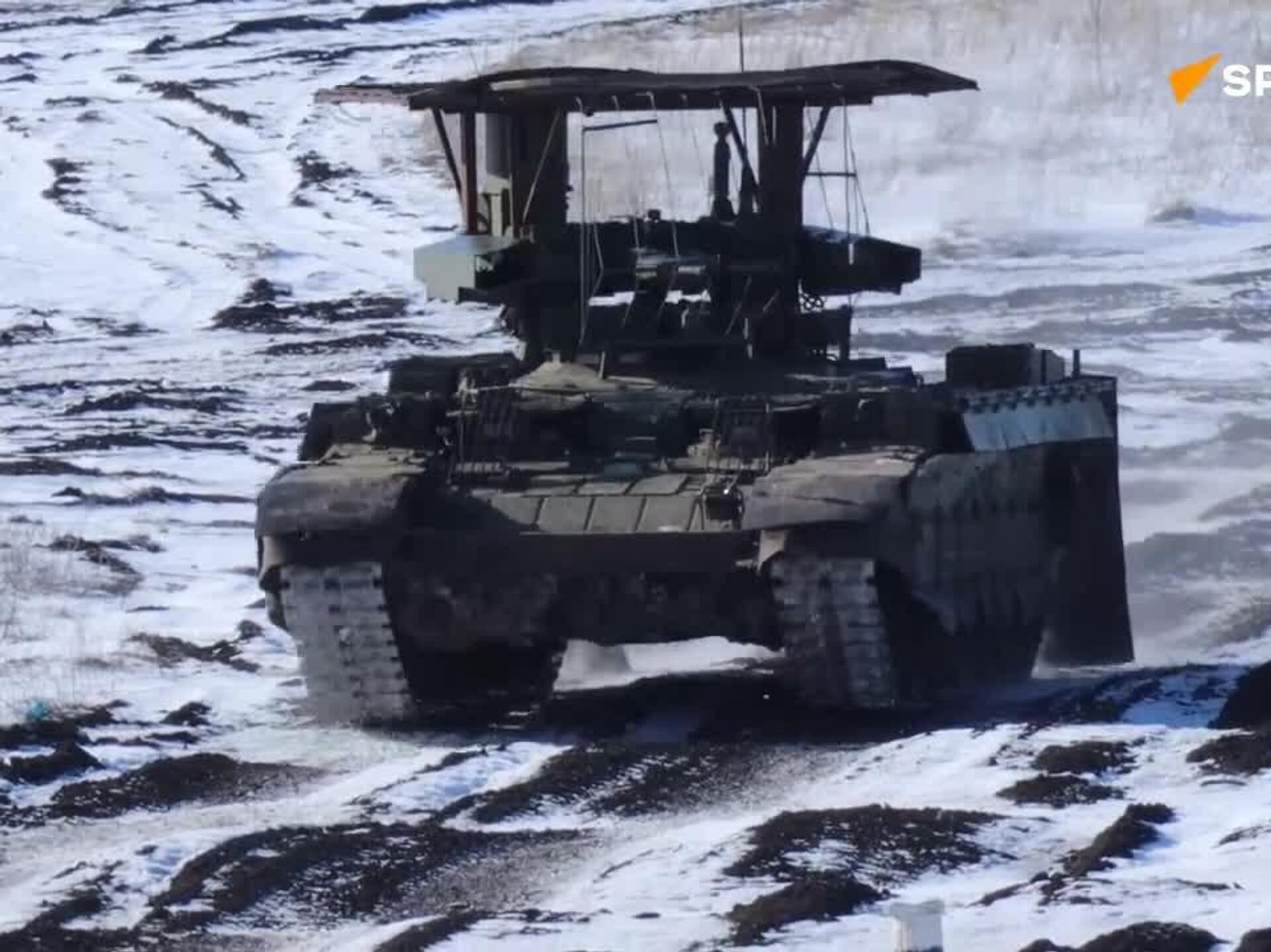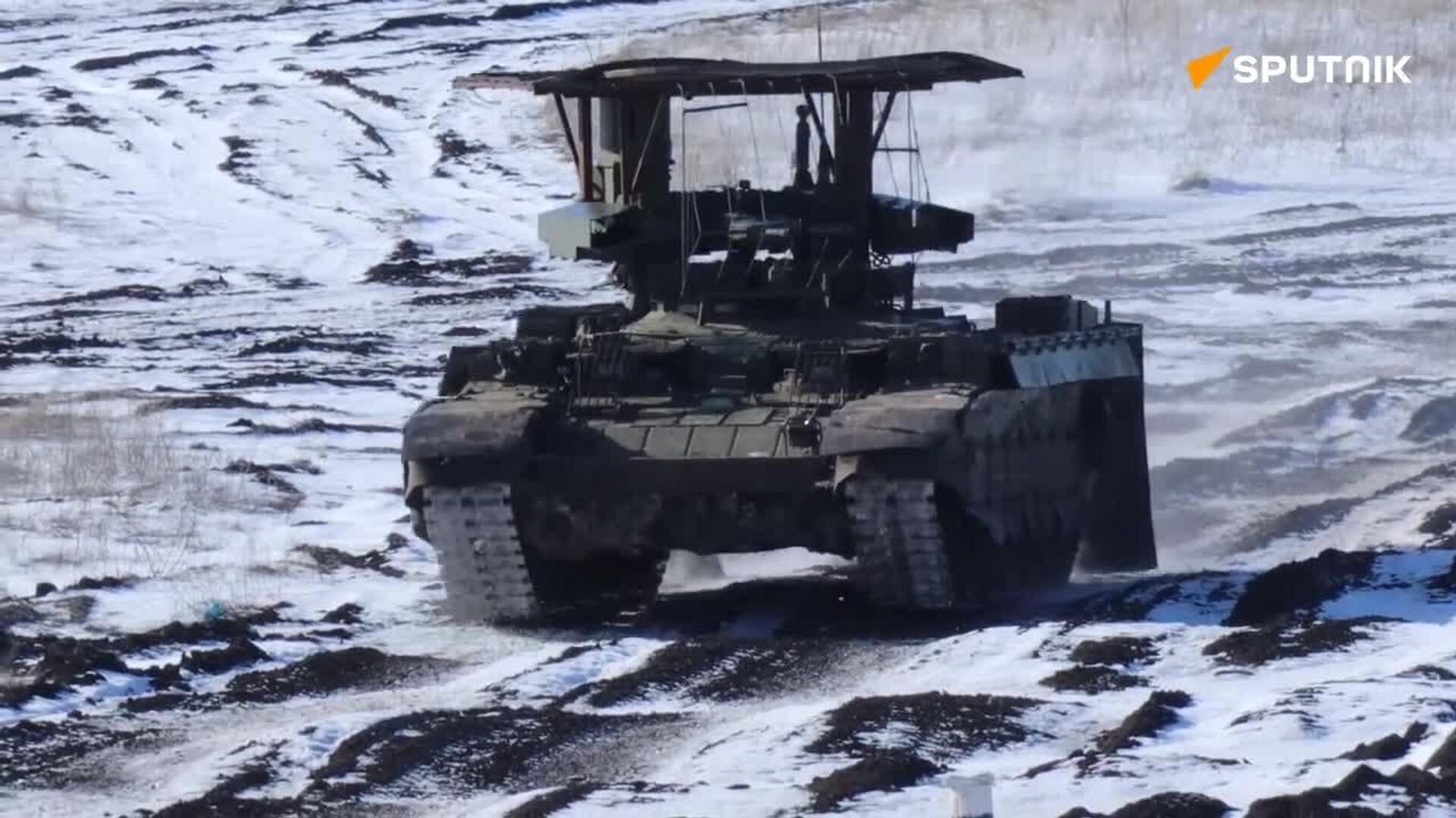08:14 23.02.2026 (Mis à jour: 08:22 23.02.2026) Les véhicules de soutien de chars BMPT Terminator s’entraînent sur un terrain avant de participer à l’opération militaire spéciale