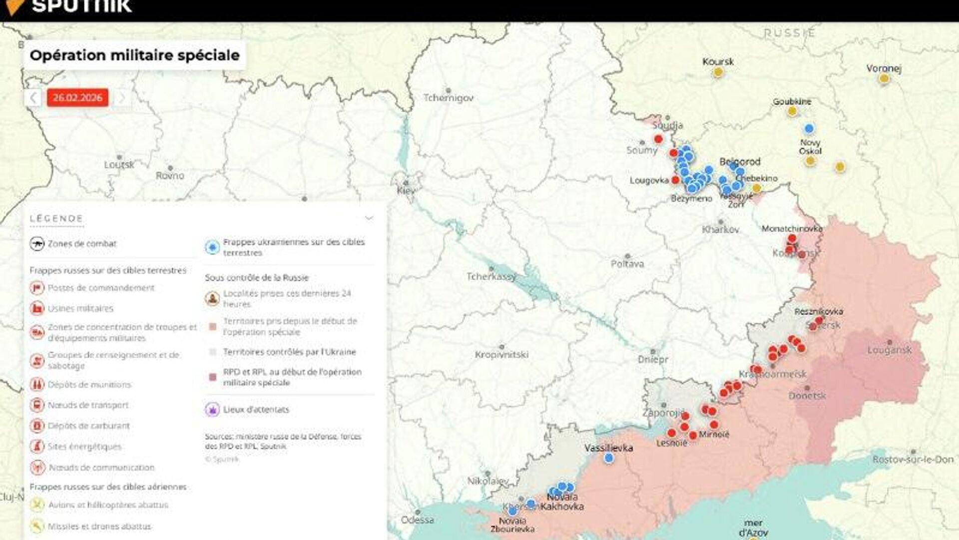 Situation dans la zone de l'opération militaire spéciale russe au 26 février Pour en savoir plus sur l’emplacement et l’avancée des troupes, consultez... 26.02.2026, Sputnik Afrique