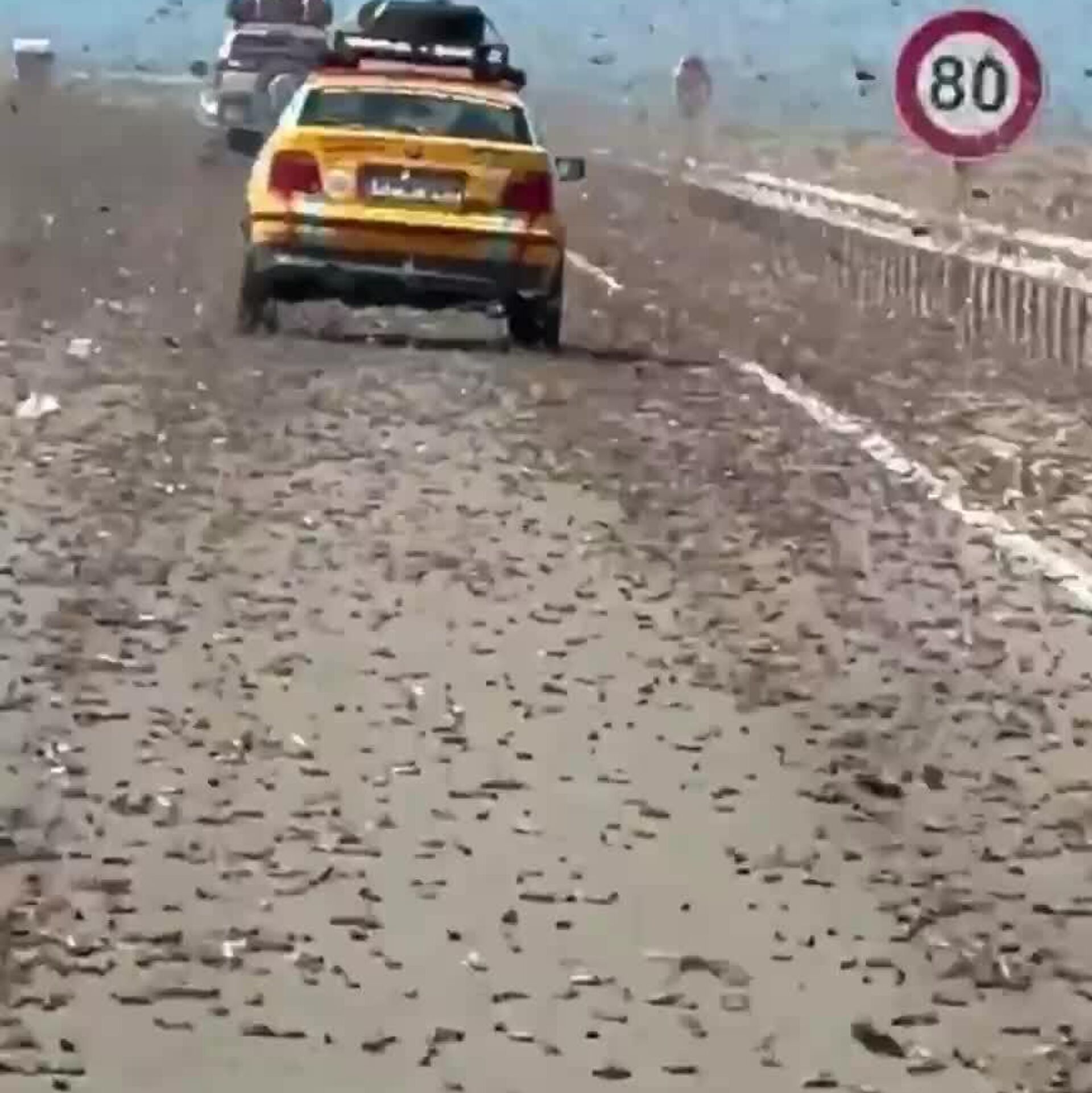 ▶ D'épais essaims de criquets pèlerins ont envahi une autoroute marocaine