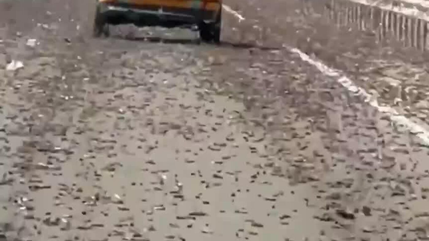 07:57 27.02.2026 (Mis à jour: 08:02 27.02.2026) ▶ D'épais essaims de criquets pèlerins ont envahi une autoroute marocaine
