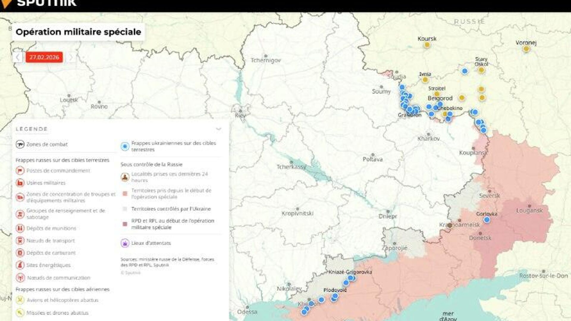 Situation dans la zone de l'opération militaire spéciale russe au 27 février Pour en savoir plus sur l’emplacement et l’avancée des troupes, consultez... 27.02.2026, Sputnik Afrique