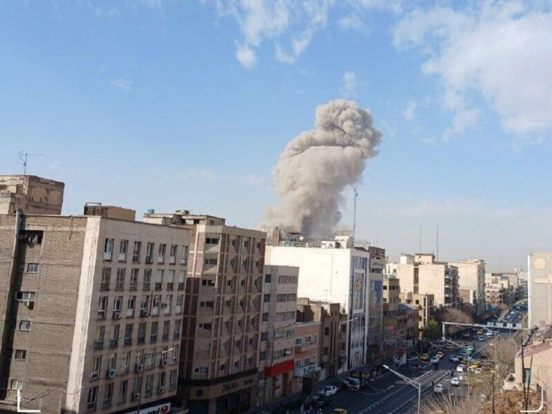 De la fumée s'élève dans le quartier de la rue Pasteur, où se trouvent de nombreux bâtiments gouvernementaux, ainsi que la résidence de Khamenei, précise un correspondant de Sputnik.