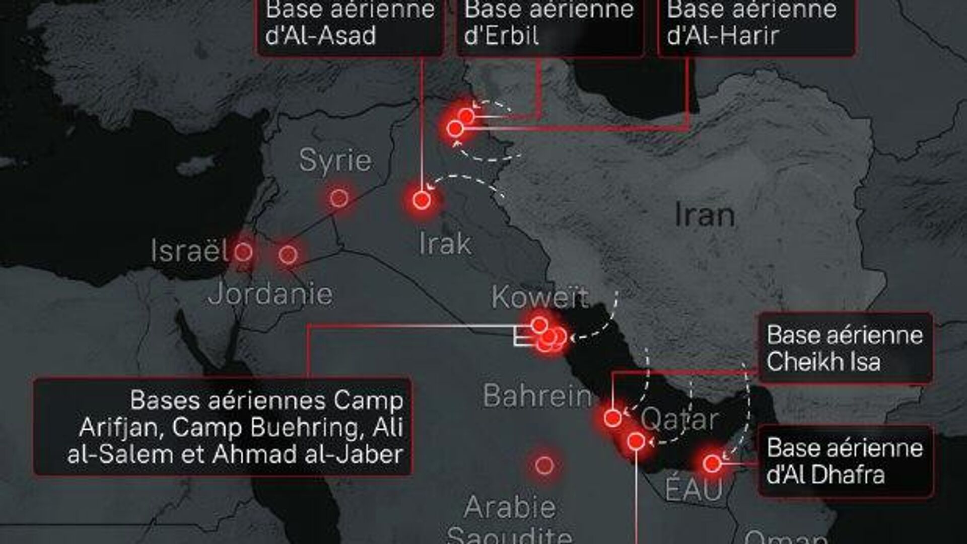 Bases militaires à la portée des missiles iraniens