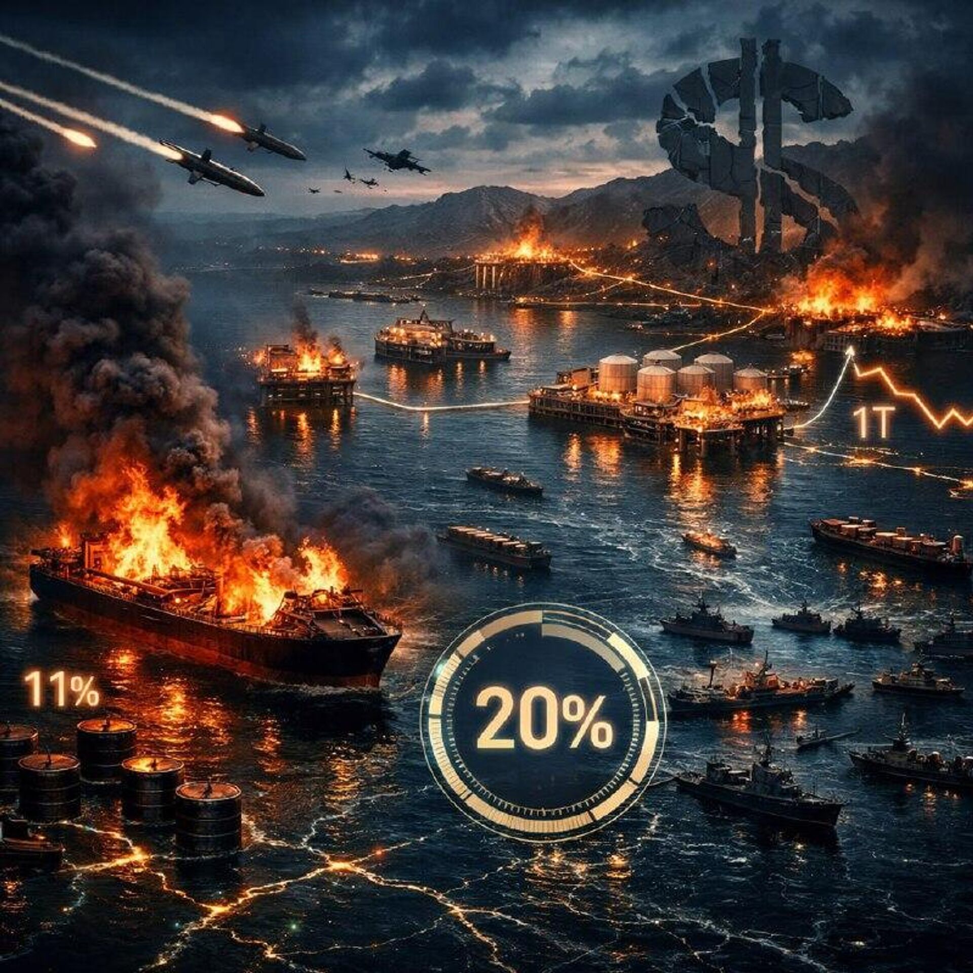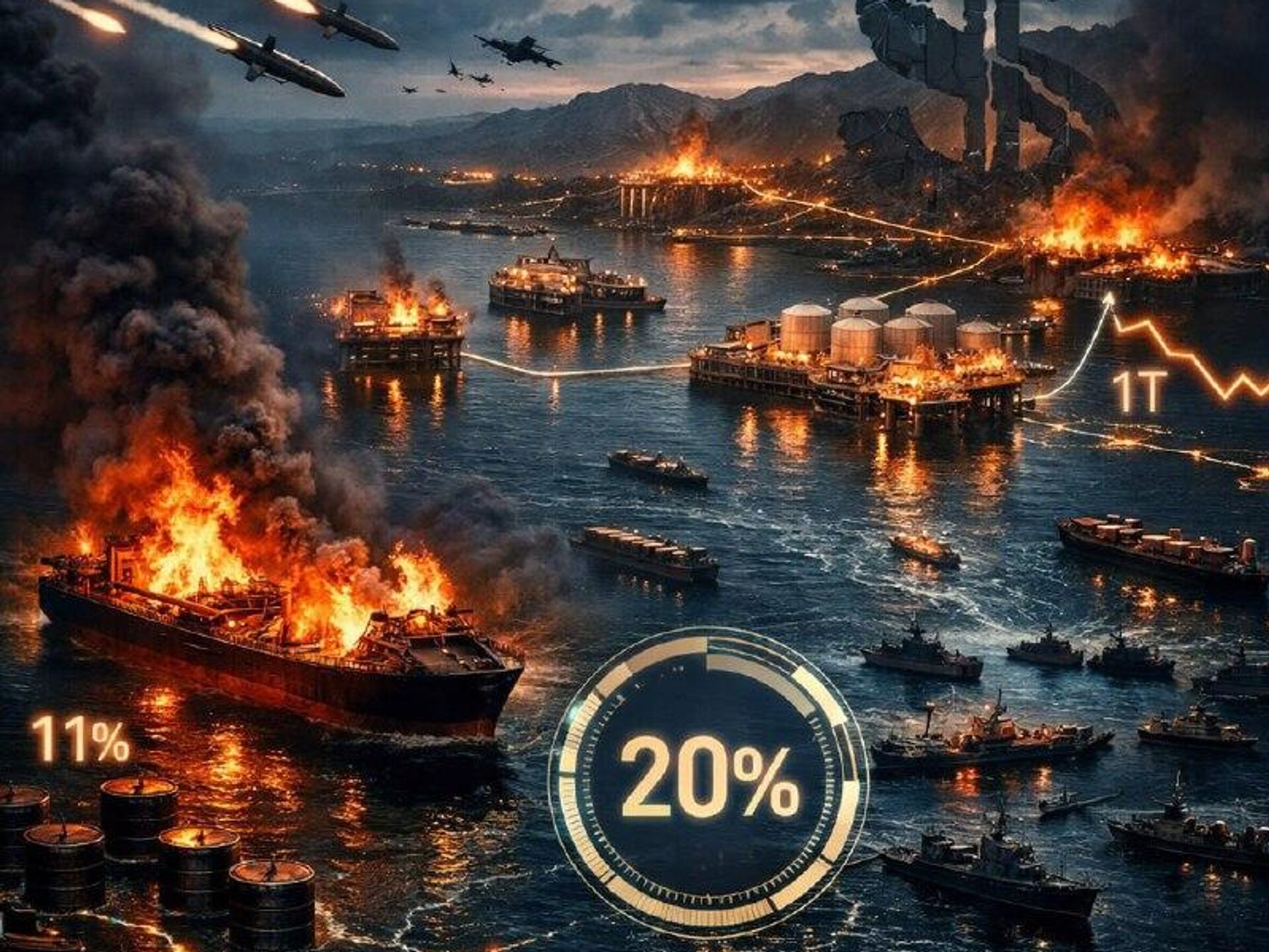 La navigation dans le détroit d'Ormuz est interrompue, bloquant 20% des approvisionnements mondiaux en pétrole.