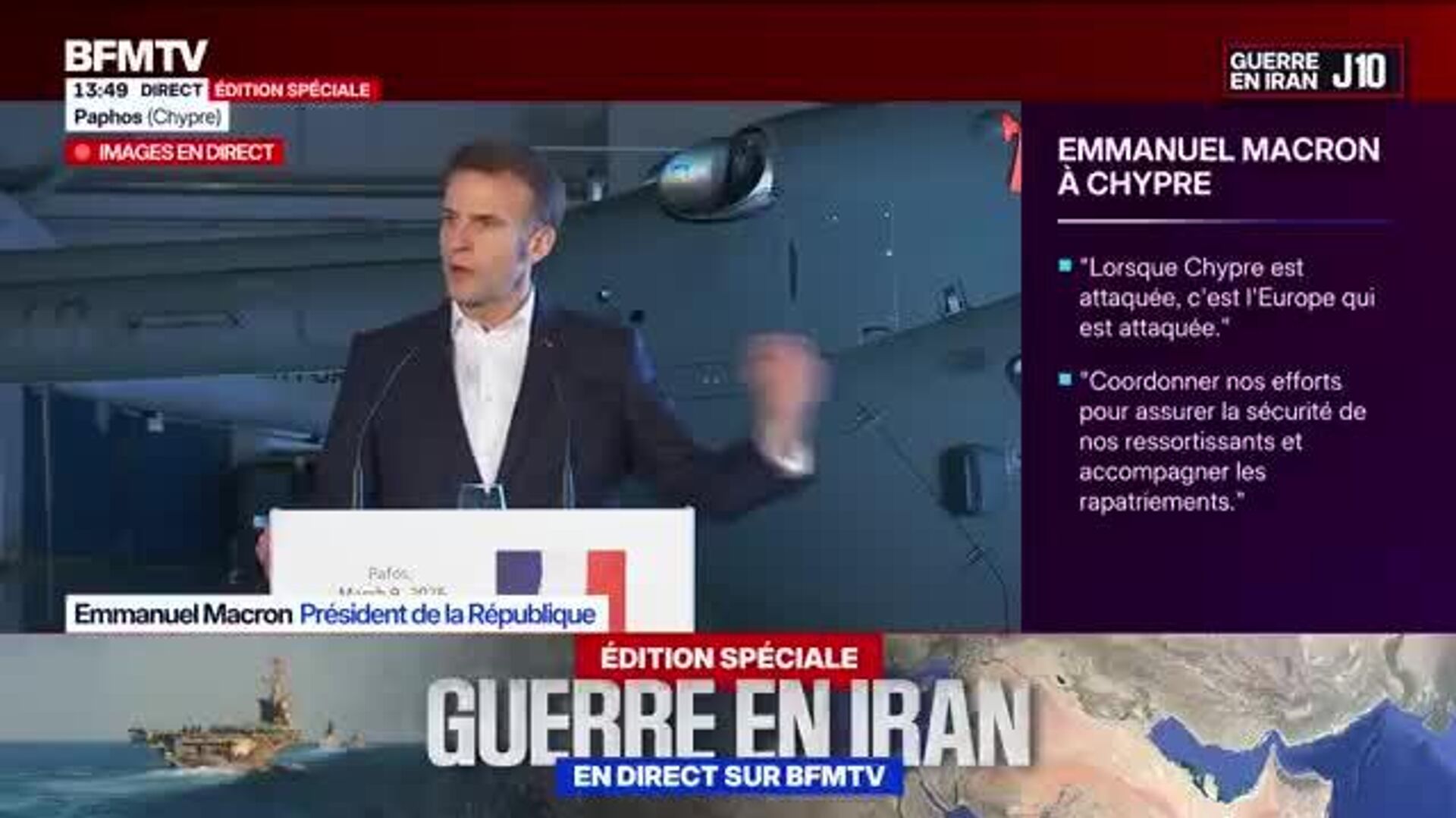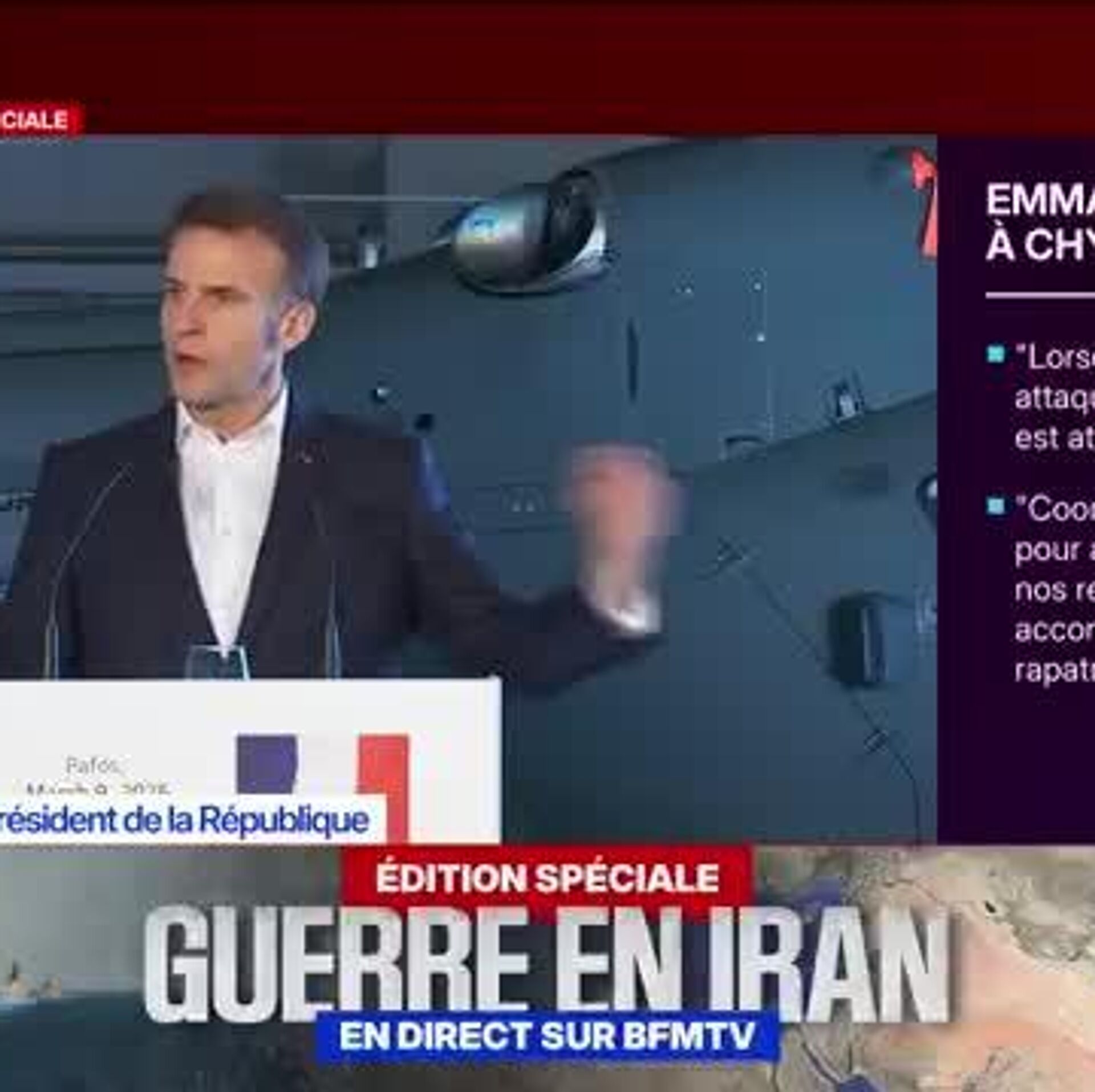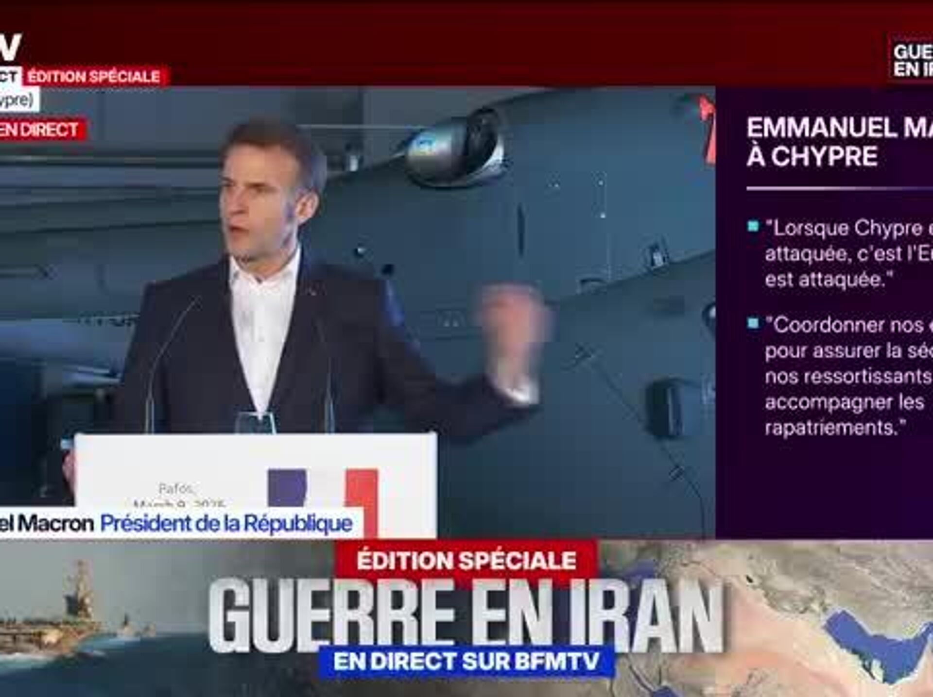 Le chef de l'Etat a également affiché son objectif de se tenir de "manière strictement défensive" aux côtés de "tous les pays attaqués par l'Iran dans sa riposte".