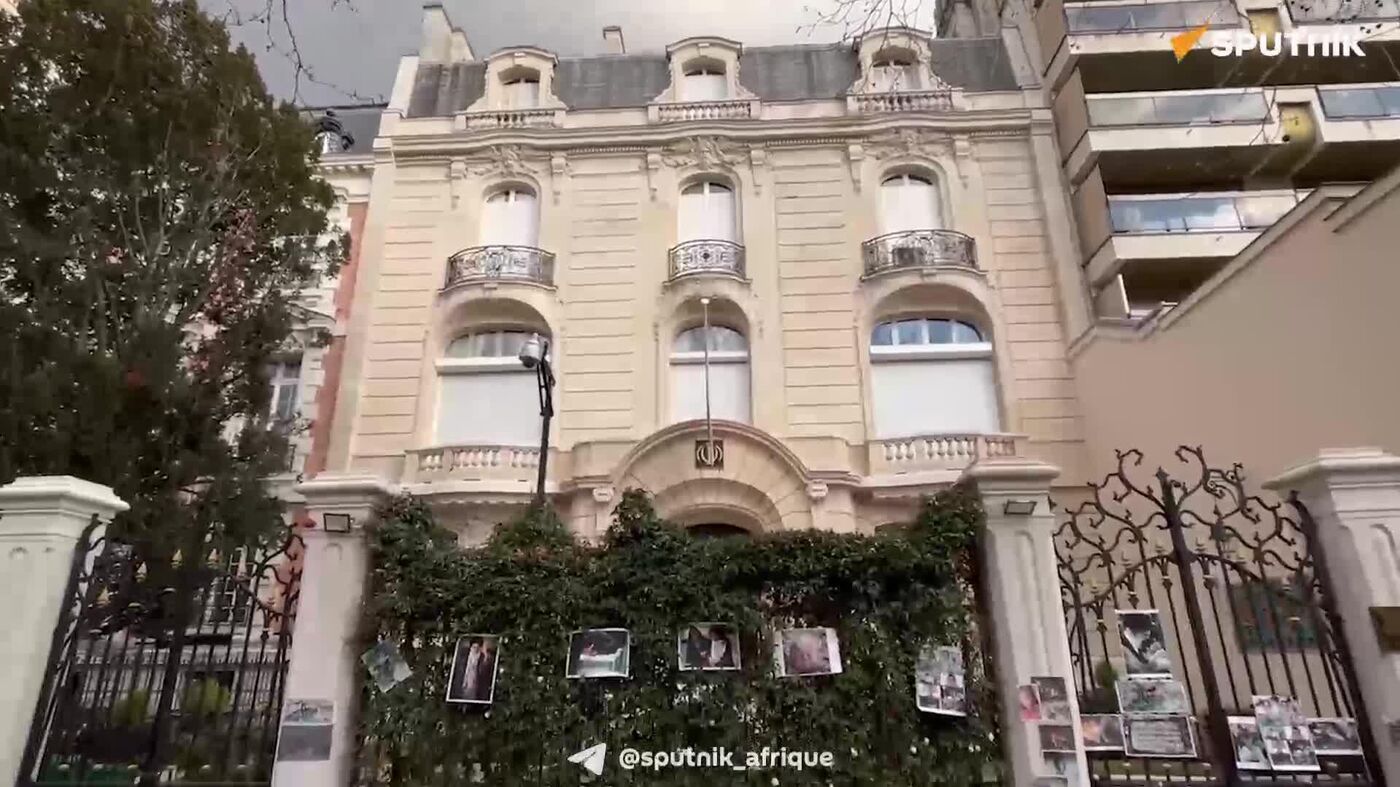 Sur les images filmées par un correspondant de Sputnik Afrique, on voit des photos et des fleurs apportées à l'enceinte de la mission diplomatique.