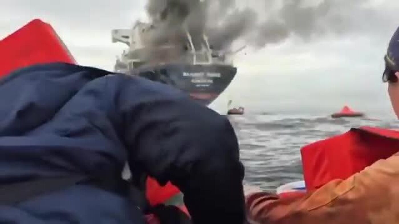 Des marins thaïlandais quittent leur bateau en flammes attaqué par un drone iranien dans le détroit d'Ormuz#viralAbonnez-vous @sputnik_afrique Sputnik... 12.03.2026, Sputnik Afrique