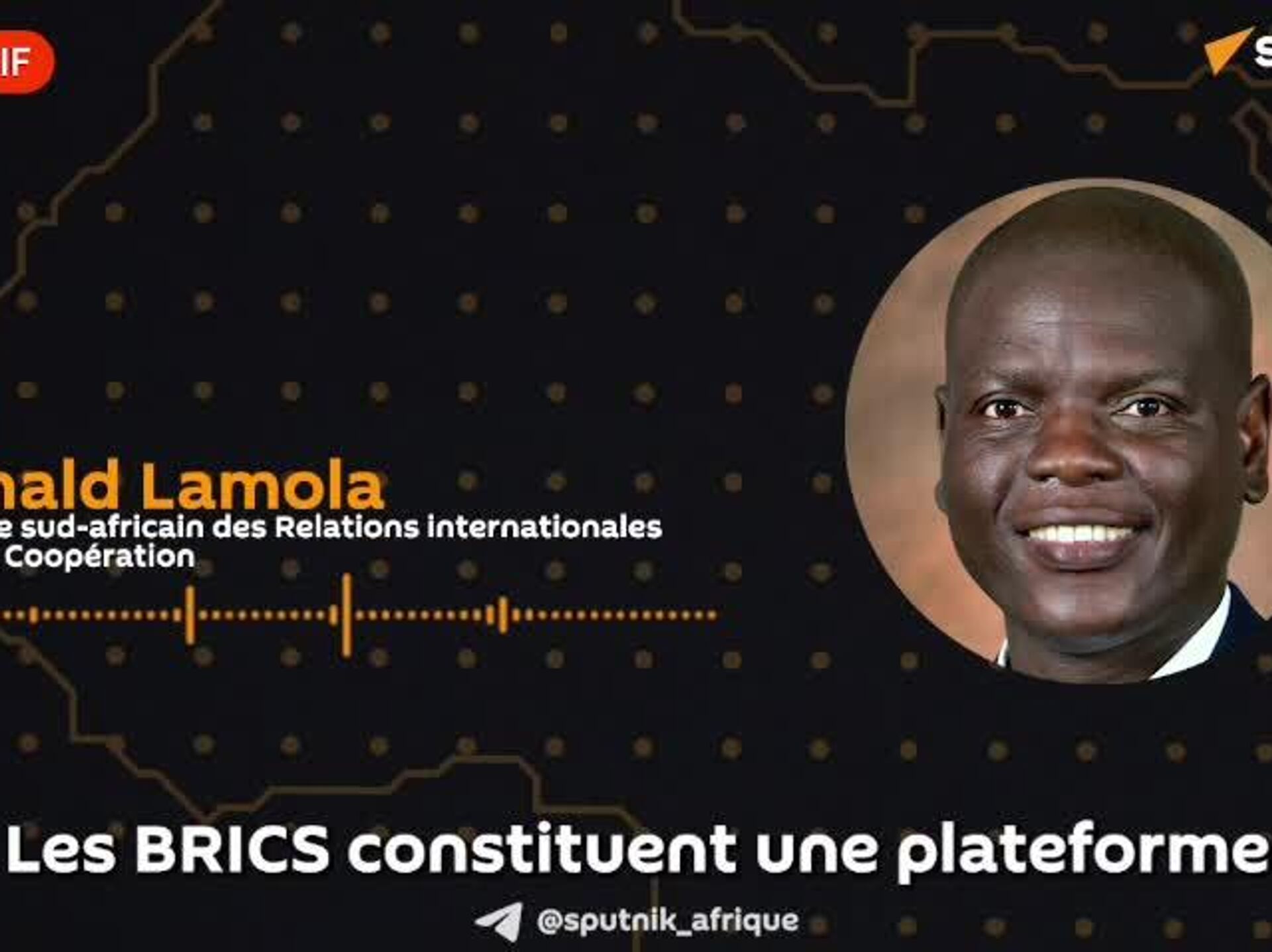 Les BRICS, moteurs de la réforme de l'architecture financière mondiale, selon un ministre sud-africain "Les BRICS constituent un contrepoids face à certaines institutions financières internationales comme le FMI et la Banque mondiale", a déclaré Ronald Lamola, ministre sud-africain des Relations internationales, à Sputnik Afrique."Afin de tirer parti de cette plateforme, nous avons créé la Banque de développement des BRICS, qui dispose de ses propres moyens pour soutenir et aider les pays membres", a indiqué le ministre.Abonnez-vous @sputnik_afrique Sputnik Afrique | X