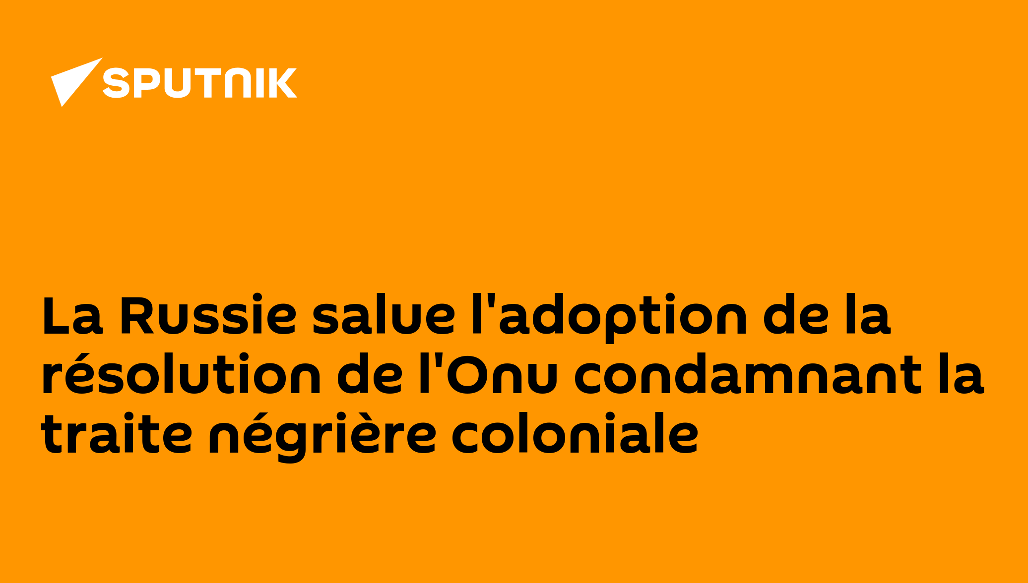 La Russie salue l'adoption de la résolution de l'Onu condamnant la traite négrière coloniale "Les Occidentaux et leurs complices qui ont refusé de soutenir ce document ont fait preuve d'hypocrisie, de mépris pour les souffrances et les épreuves endurées par les peuples africains, et d'un refus d'assumer la responsabilité des crimes commis pendant la période coloniale", a souligné le ministère russe des Affaires étrangères.Abonnez-vous @sputnik_afrique Sputnik Afrique | X