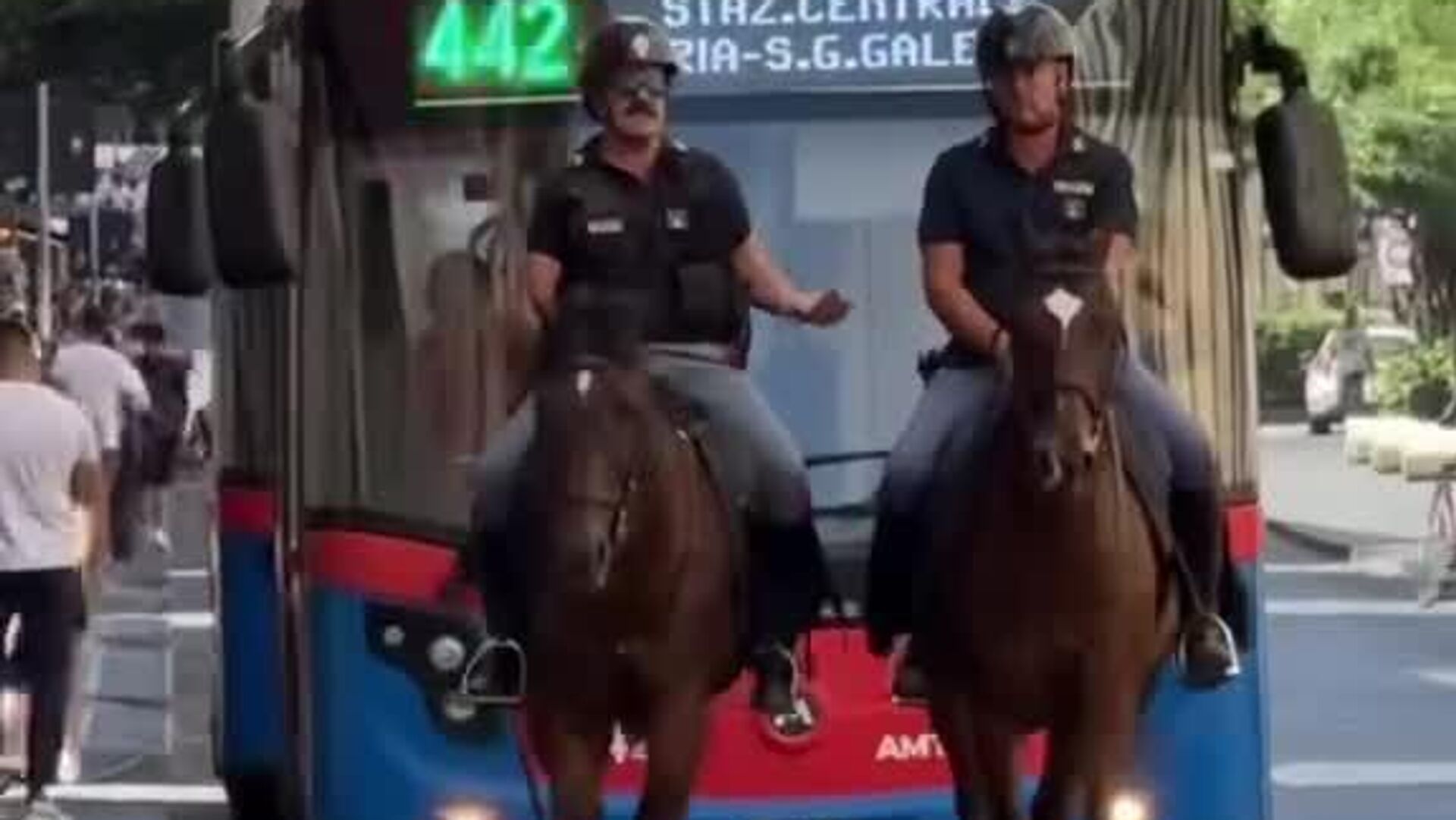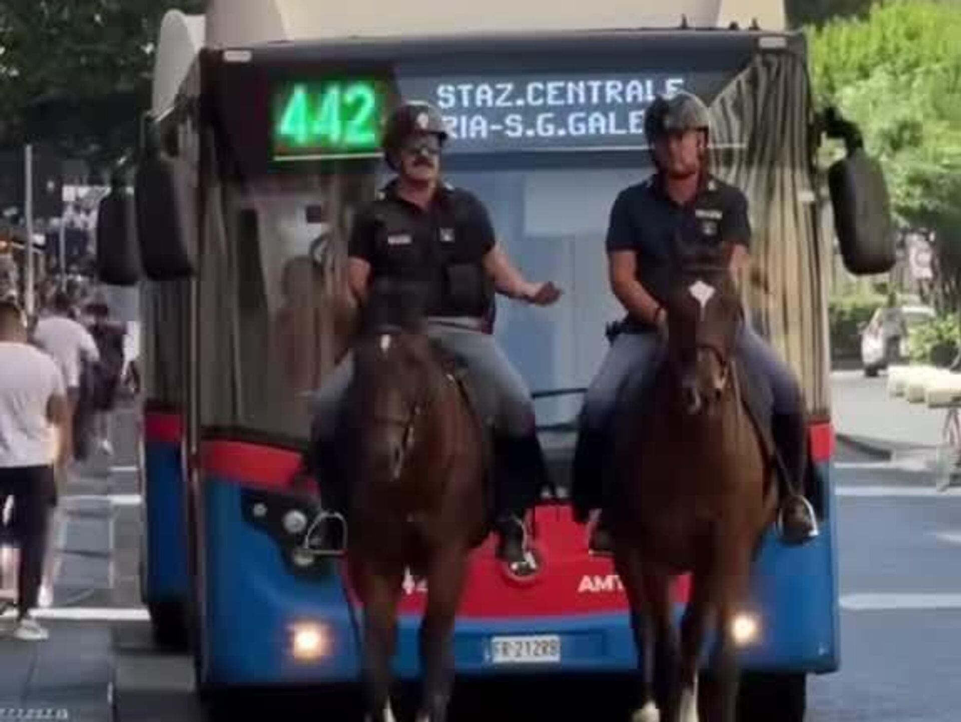 À Catane, deux policiers à cheval se sont lancés dans une conversation tellement passionnante qu’ils n’ont pas remarqué l’autobus qui les suivait sagement au pas, comme un élève timide qui n’ose pas dépasser ses professeurs. #viral