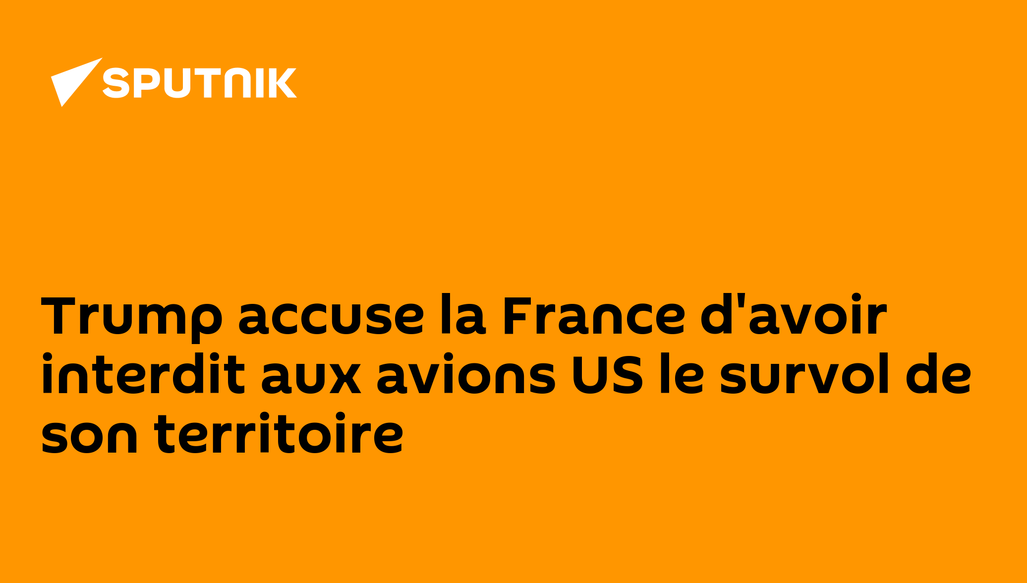 Trump accuse la France d'avoir interdit aux avions US le survol de son territoire"La France a été extrêmement peu coopérative à l'égard du Boucher iranien, qui a été éliminé avec succès! Les États-Unis s'en souviendront!", a écrit le Président américain sur sa page Truth Social.Auparavant, l'Espagne avait également fermé son espace aérien aux avions américains.Abonnez-vous @sputnik_afrique Sputnik Afrique | X