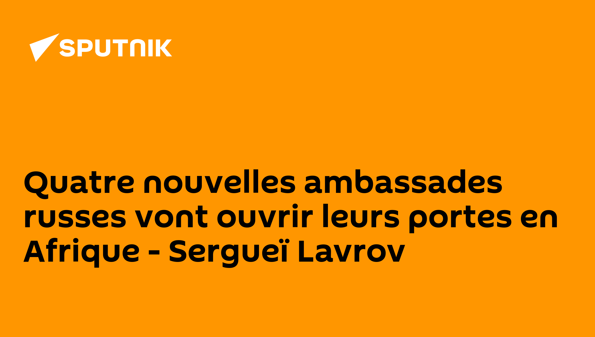 Quatre nouvelles ambassades russes vont ouvrir leurs portes en Afrique - Sergueï LavrovSur le continent africain travaillent déjà 45 ambassades russes, a rappelé le chef de la diplomatie russe."Nous restaurons assez rapidement notre présence sur le continent africain, laquelle avait fortement diminué durant la période de l'effondrement de l'Union soviétique", a-t-il souligné.Le ministre n'a pas précisé de quels pays d'Afrique il s'agissait.Abonnez-vous @sputnik_afrique Sputnik Afrique | X