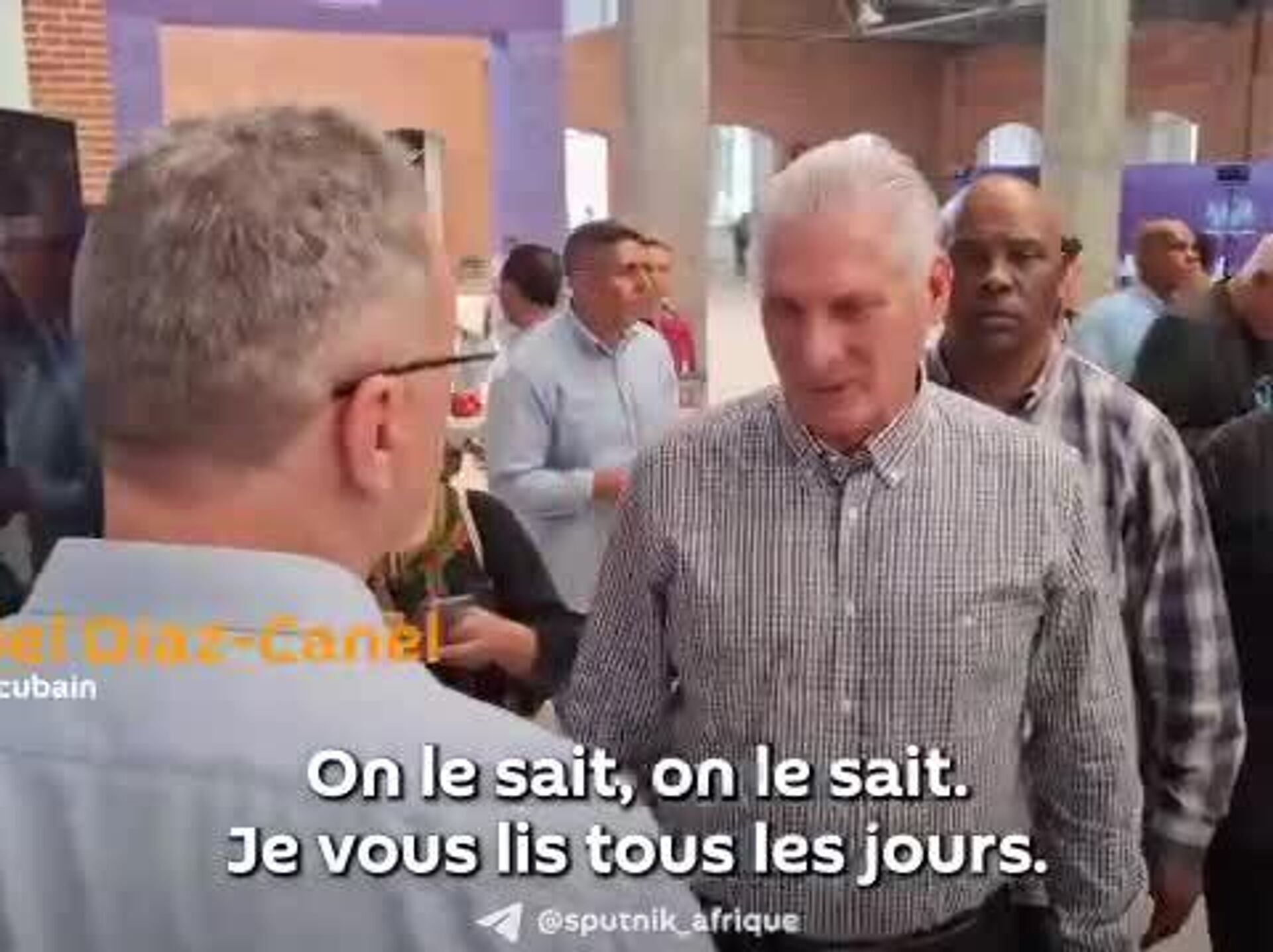 Miguel Díaz-Canel a visité le stand de Sputnik lors du 5e Colloque international Rodina à La Havane et a salué le personnel de l'agence de presse russe.